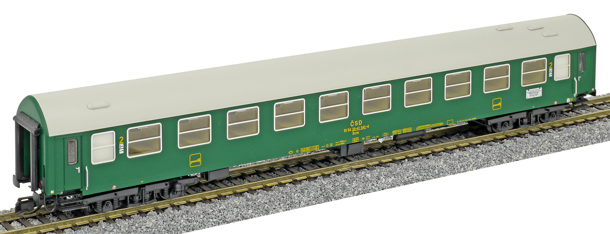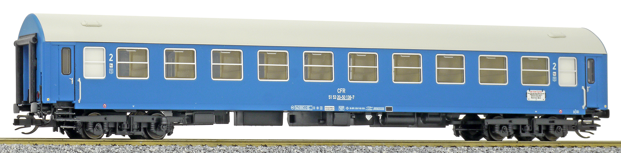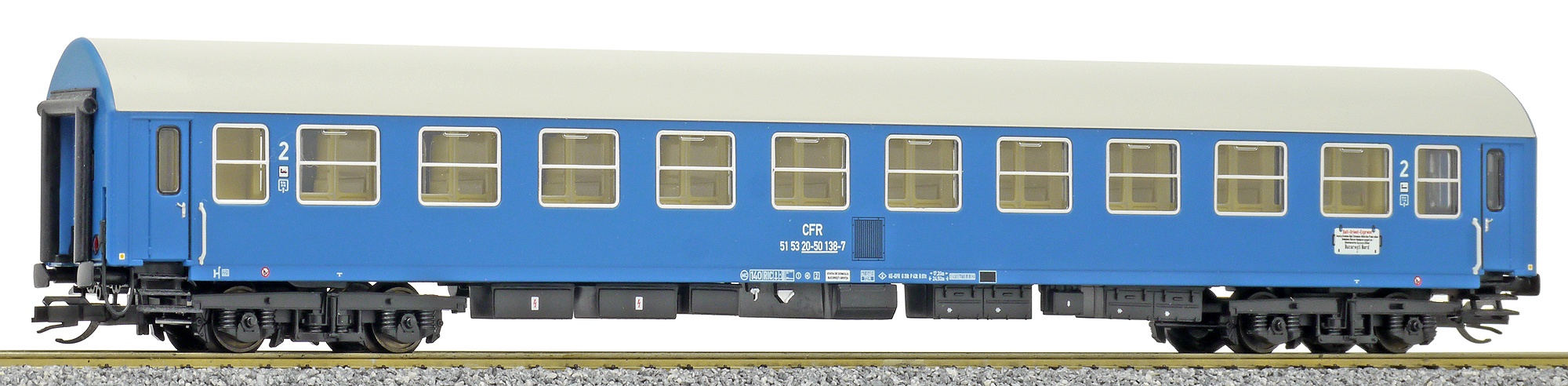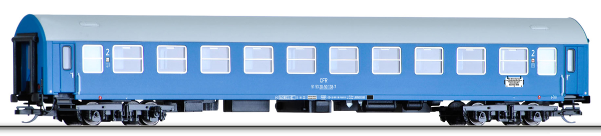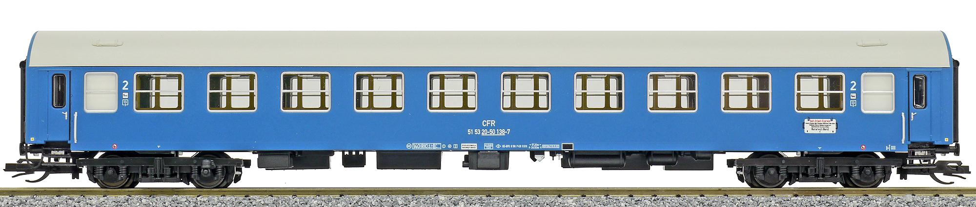 rychlíkový vůz modrý s šedou střechou 2. tř.