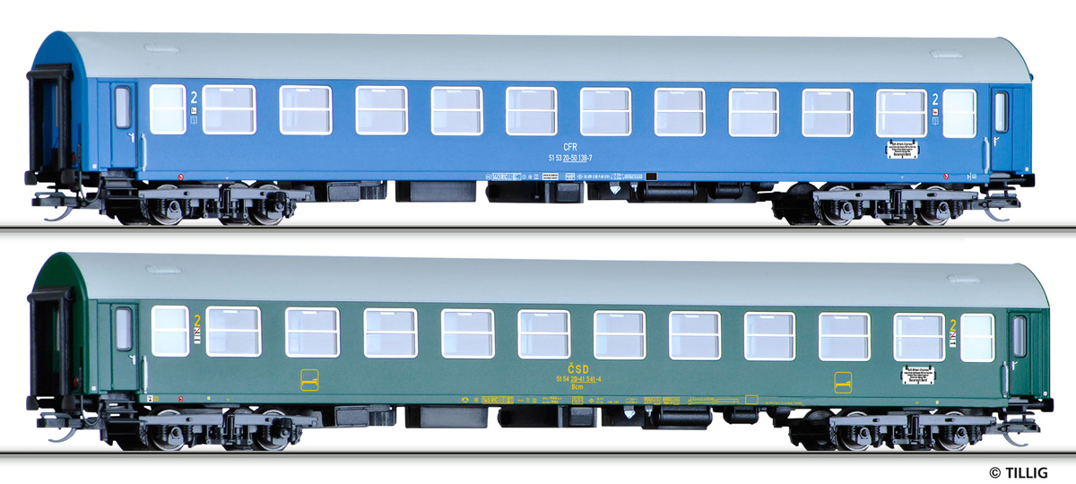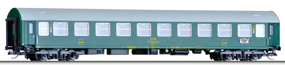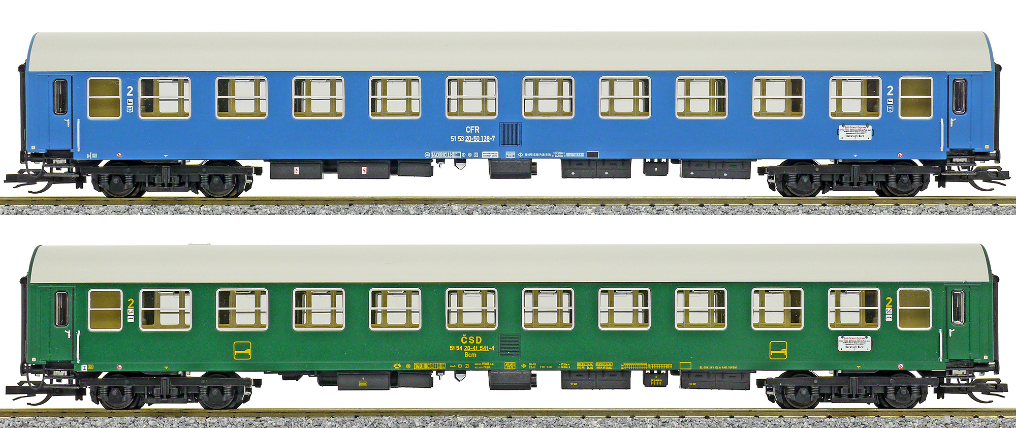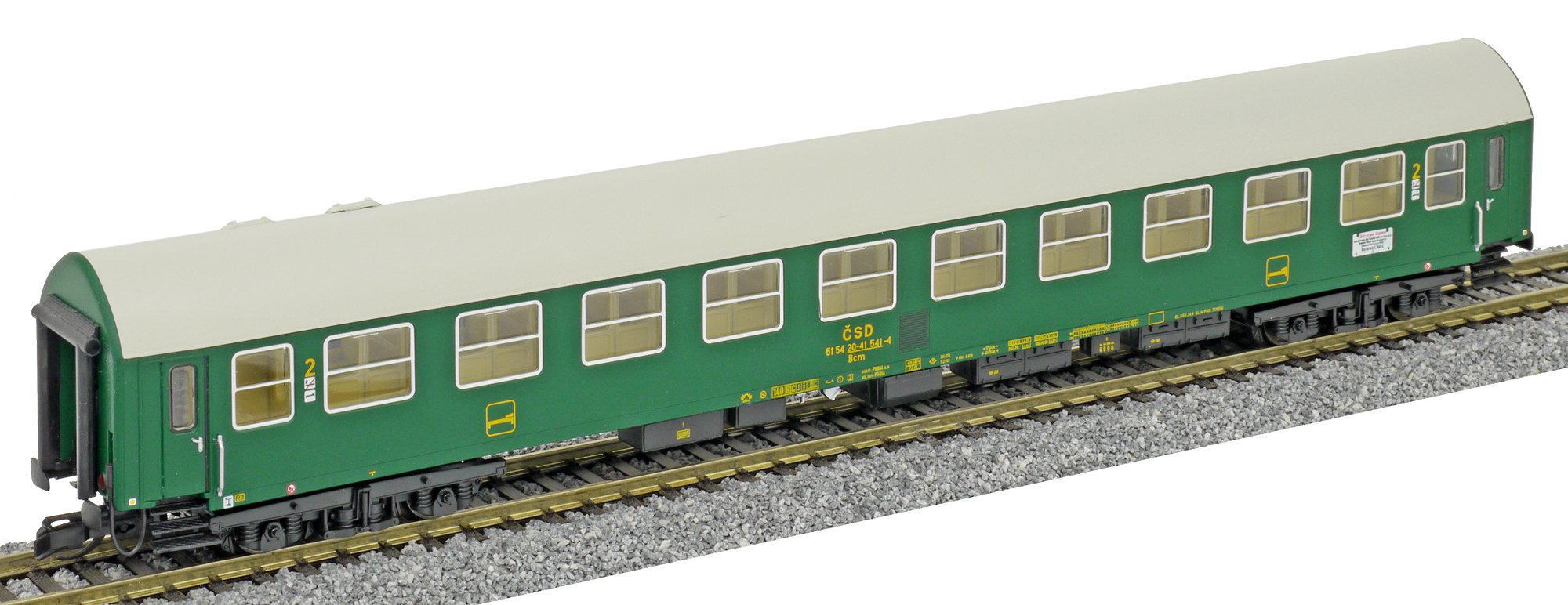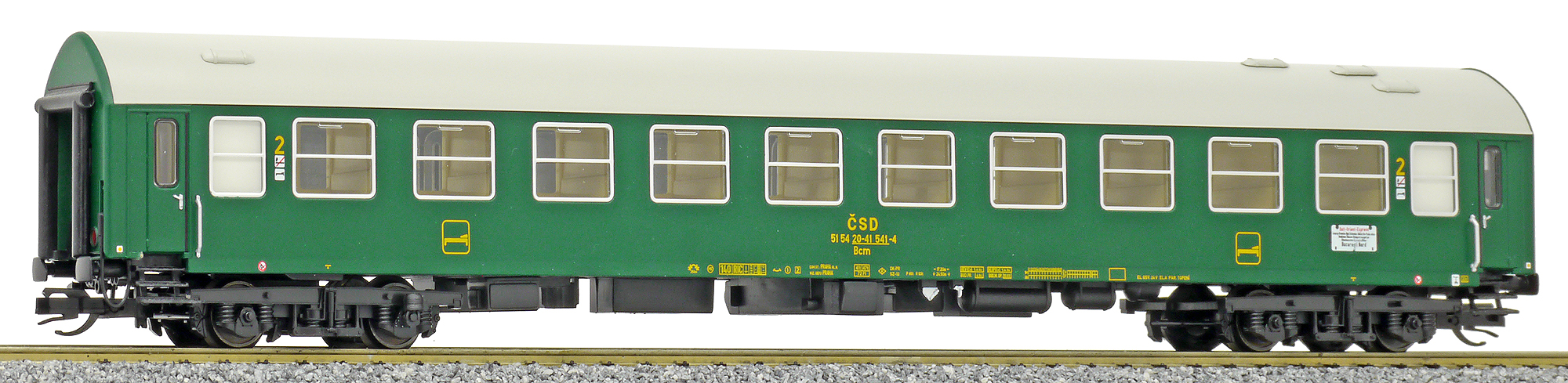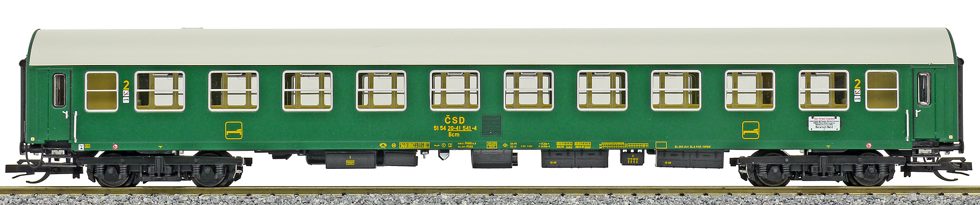 rychlíkový vůz modrý s šedou střechou 2. tř.
