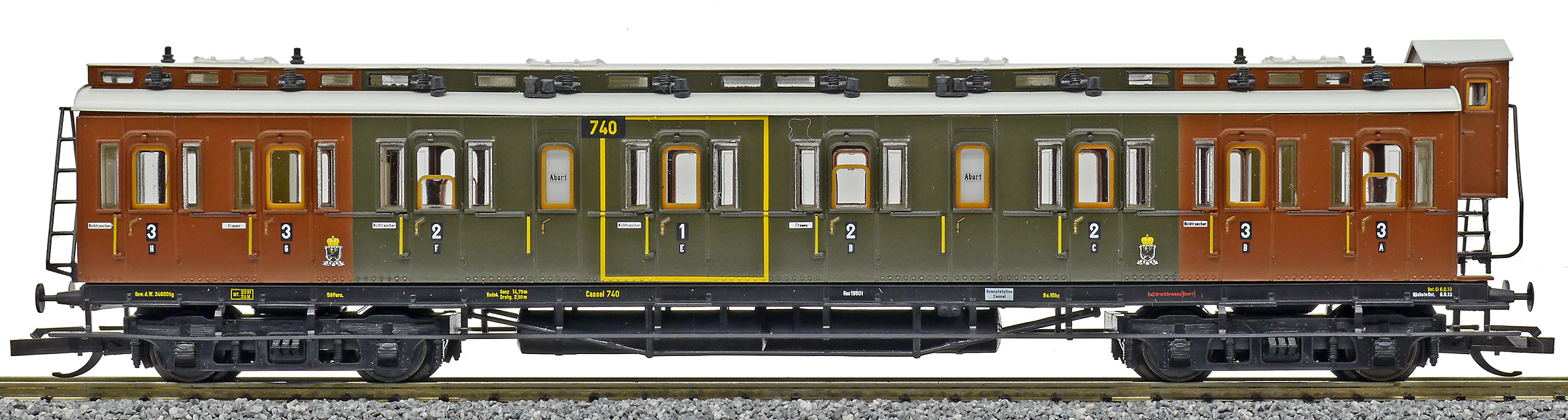 | oddílový osobní vůz tmavě zelený-červenohnědý 1./2./3. tř. |