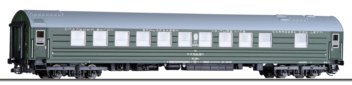 | lůžkový vůz zelený s šedou střechou |