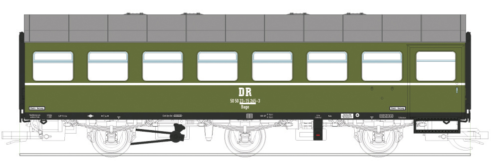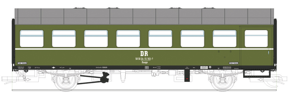 | rekonstruovaný zavazadlový vůz zelený s šedou střechou |