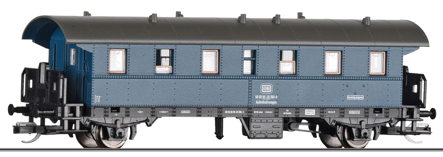 | osobní vůz modrý s šedou střechou do pracovního vlaku |