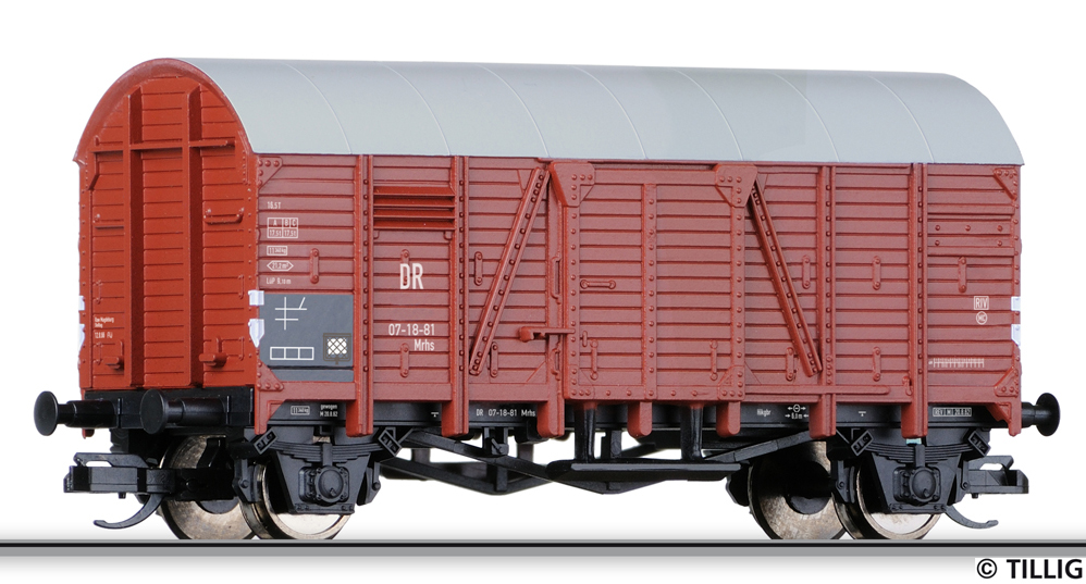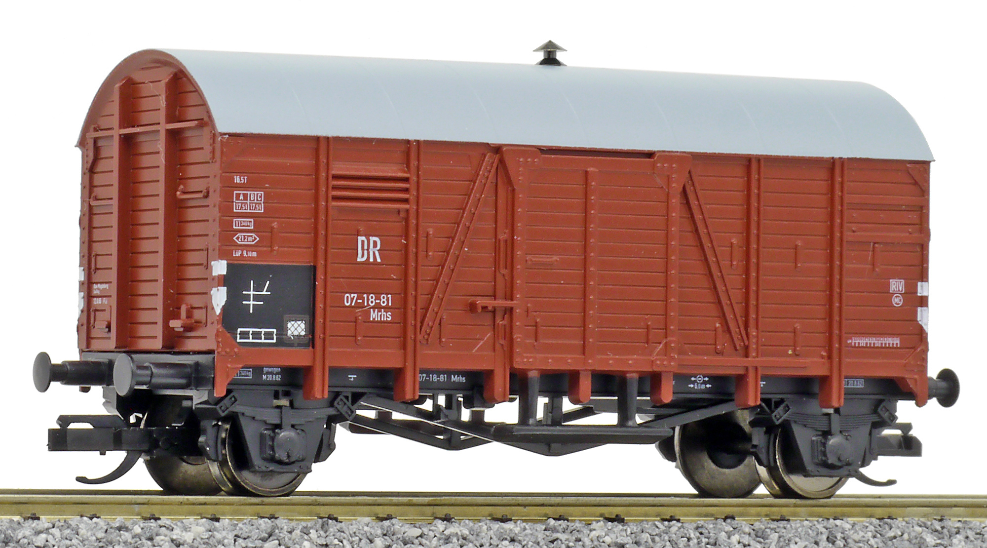 Popis   krytý nákladní vůz červenohnedý s šedou střechou