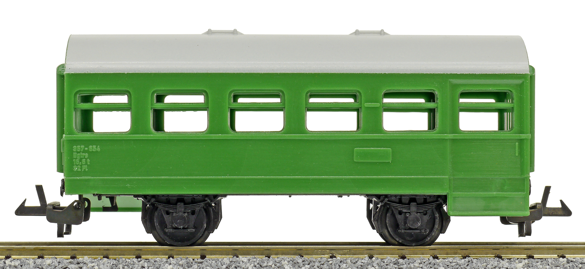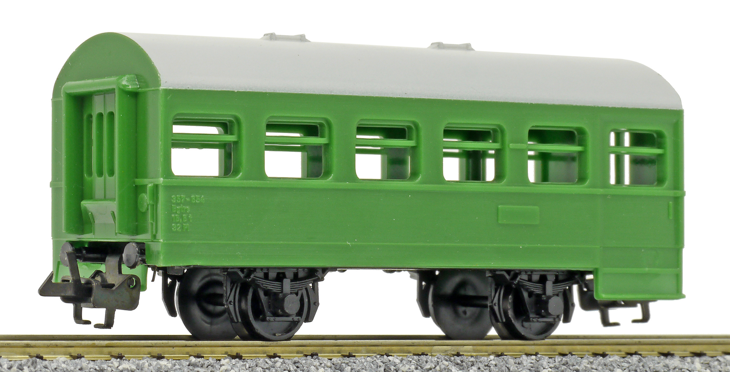 | osobní vůz zelený v barvě plastu bez zasklení s šedou střechou |