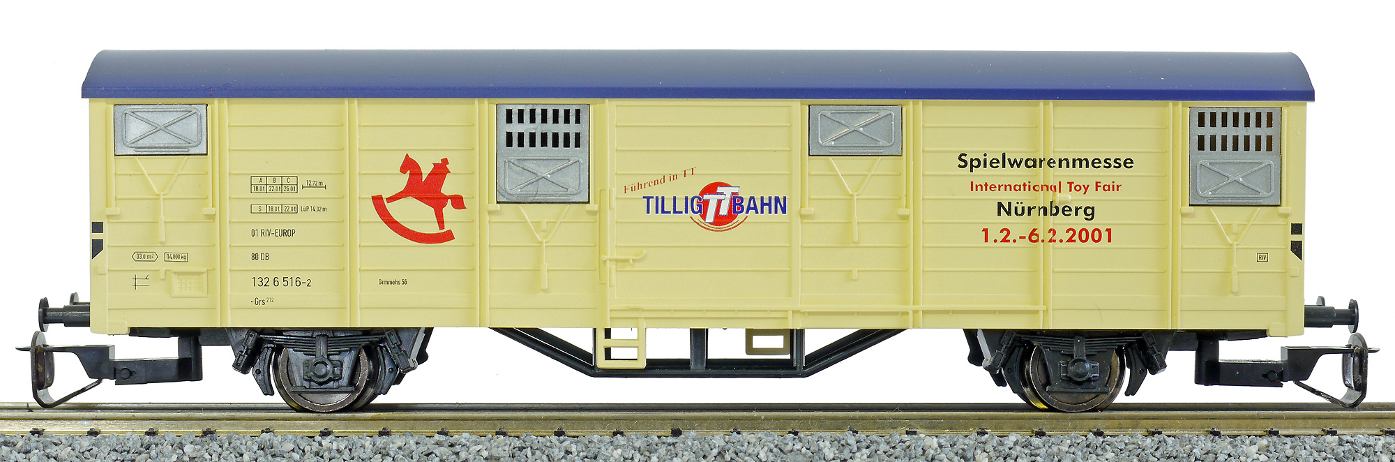 krytý nákladní vůz krémový šedou střechou „Spielwarenmesse Nürnberg 2001“