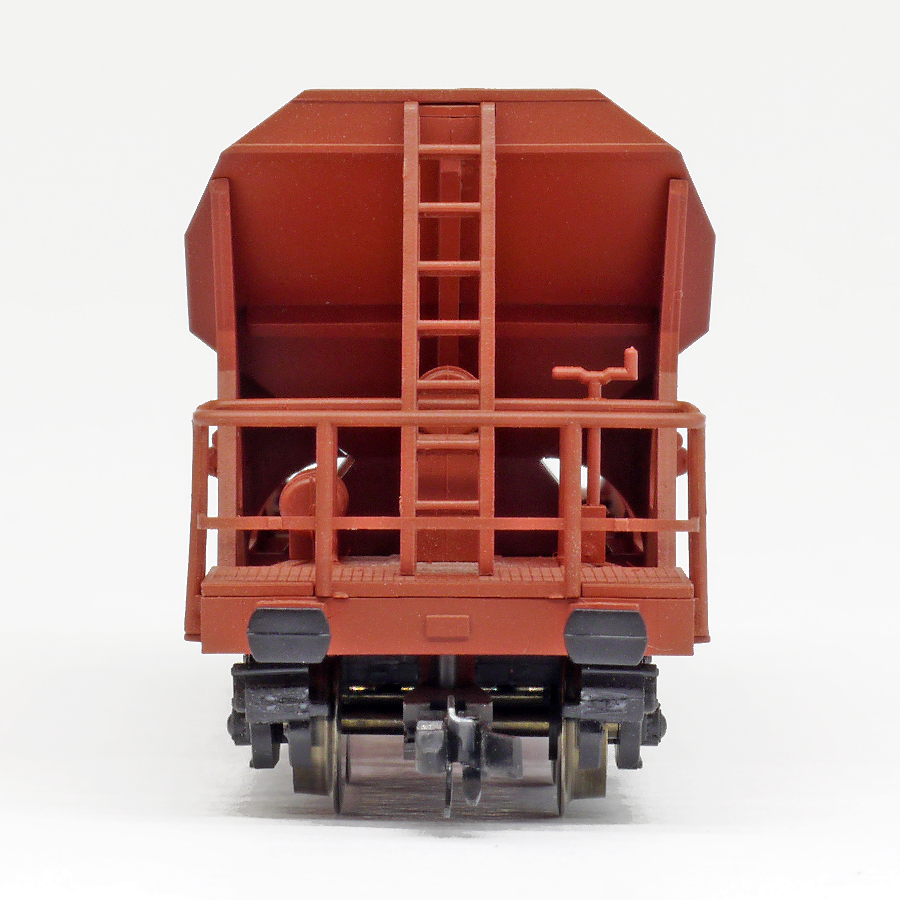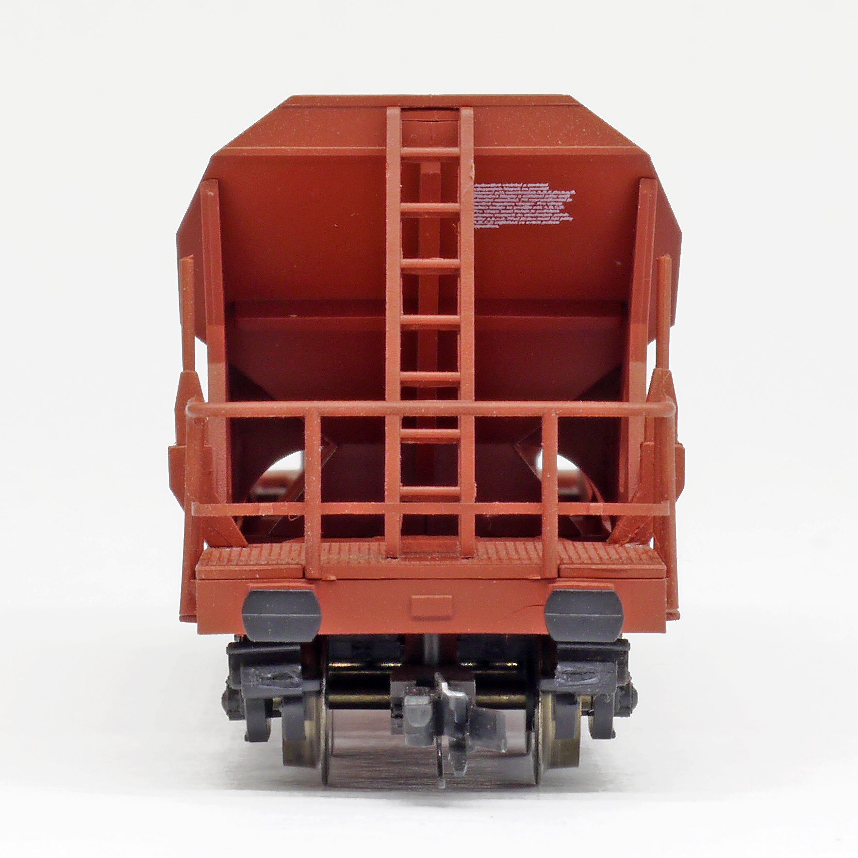 | nákladní samovýsypný vůz červenohnědý s opravnými fleky |