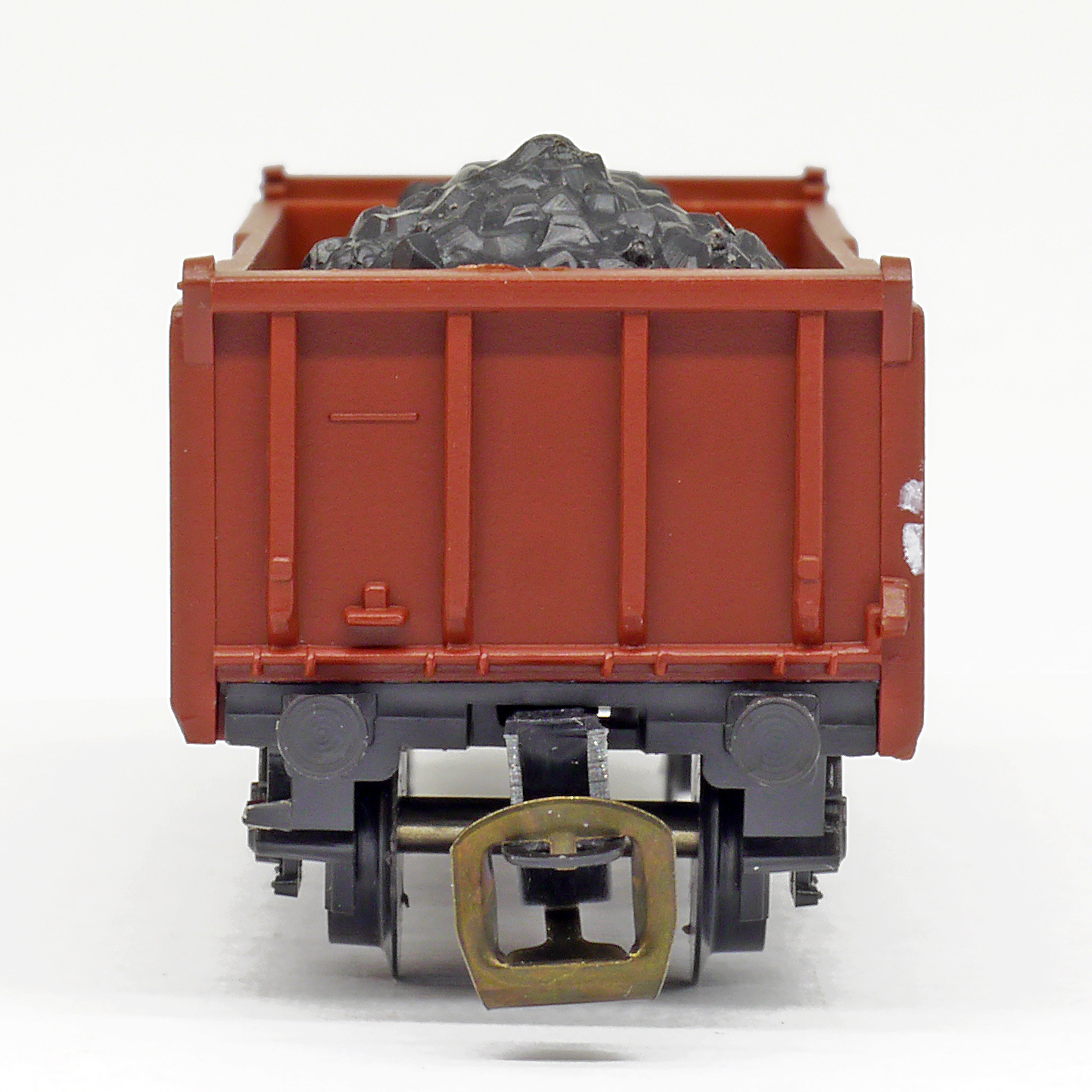 | otevřený nákladní vůz červenohnědý s nákladem uhlí |