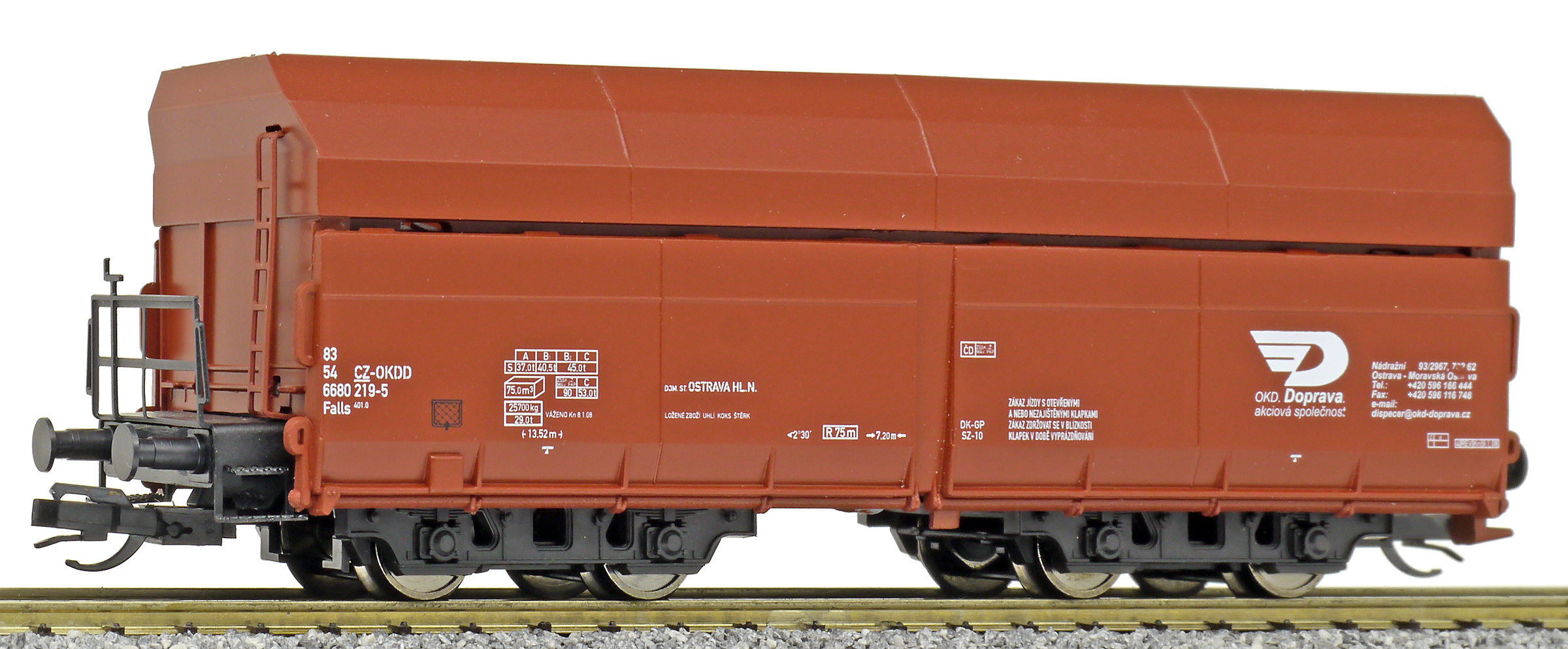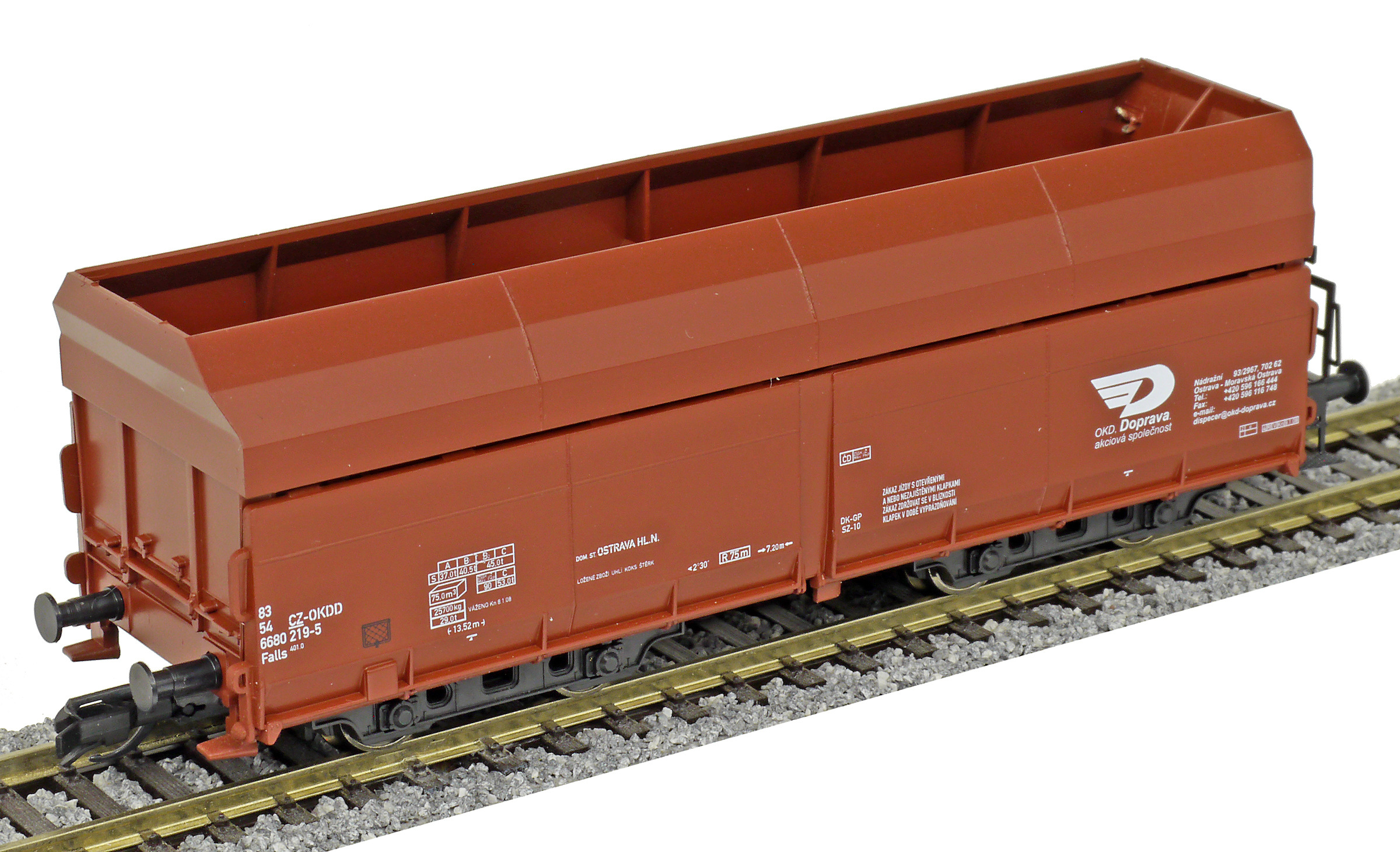 Popis   nákladní samovýsypný vůz červenohnědý „OKD Doprava“