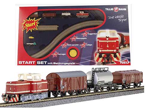 set dieselové lokomotivy T 334 a tří nákladních vozů