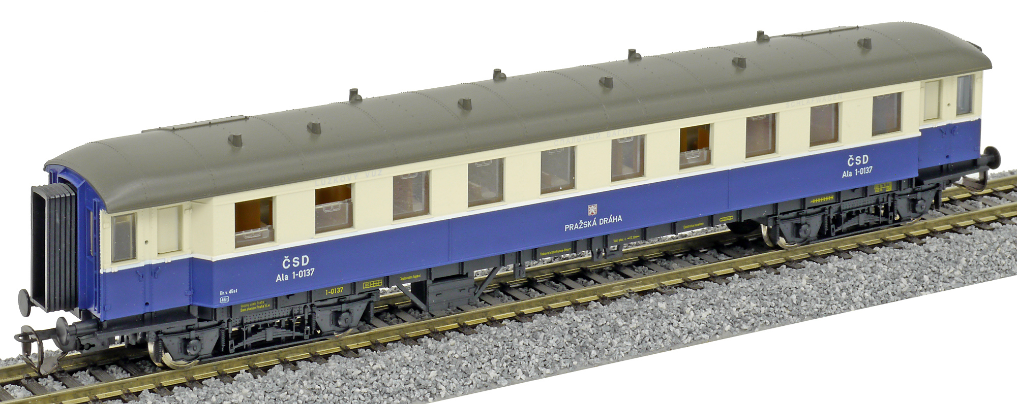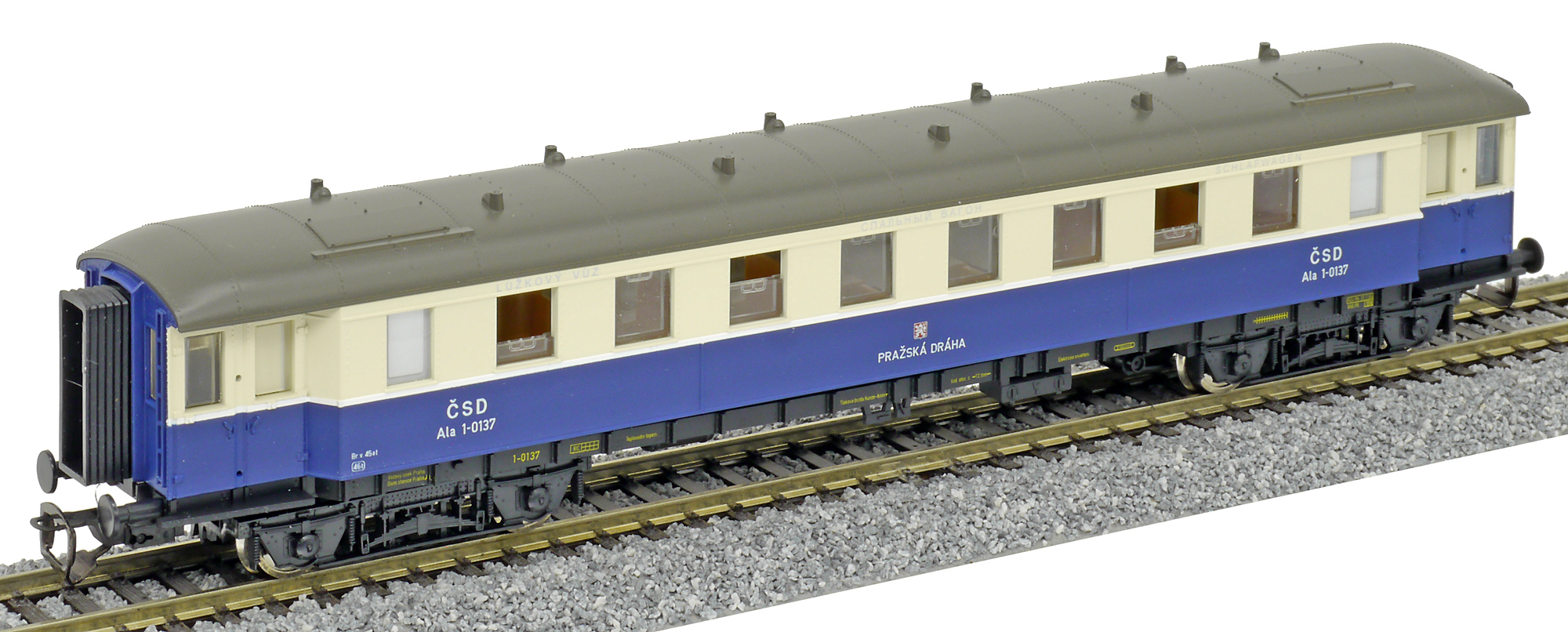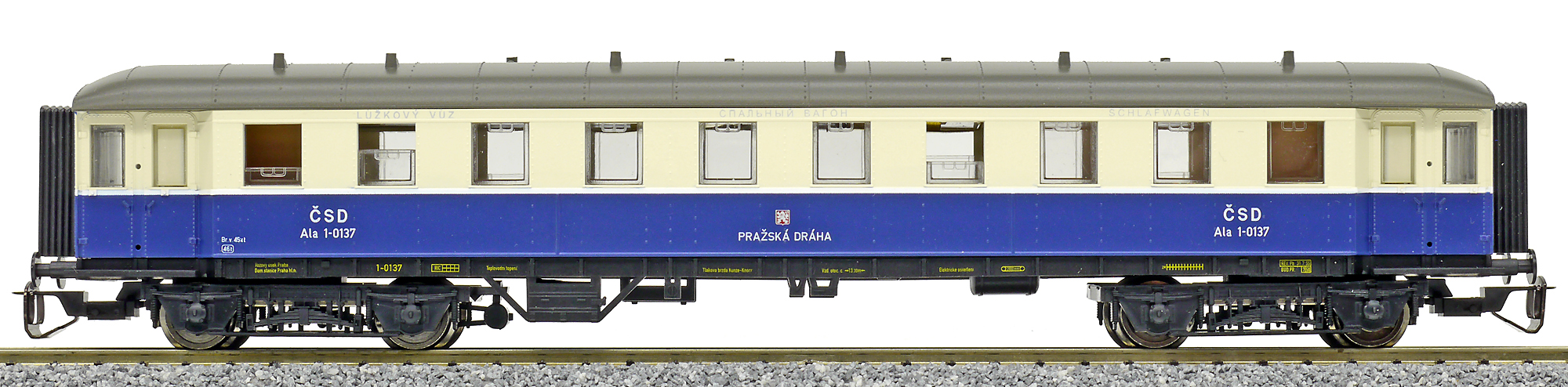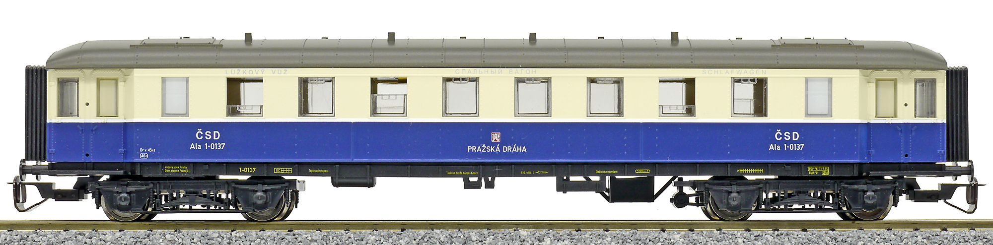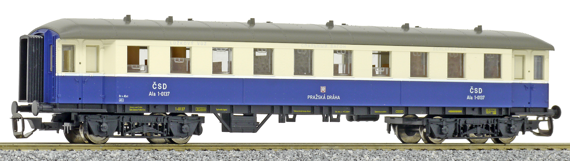 | tmavěmodrý-slonová kost s šedou střechou lůžkový vůz |