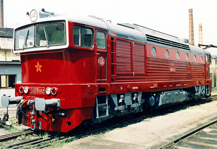 Popis   dieselová lokomotiva červená s hvězdou na čelech