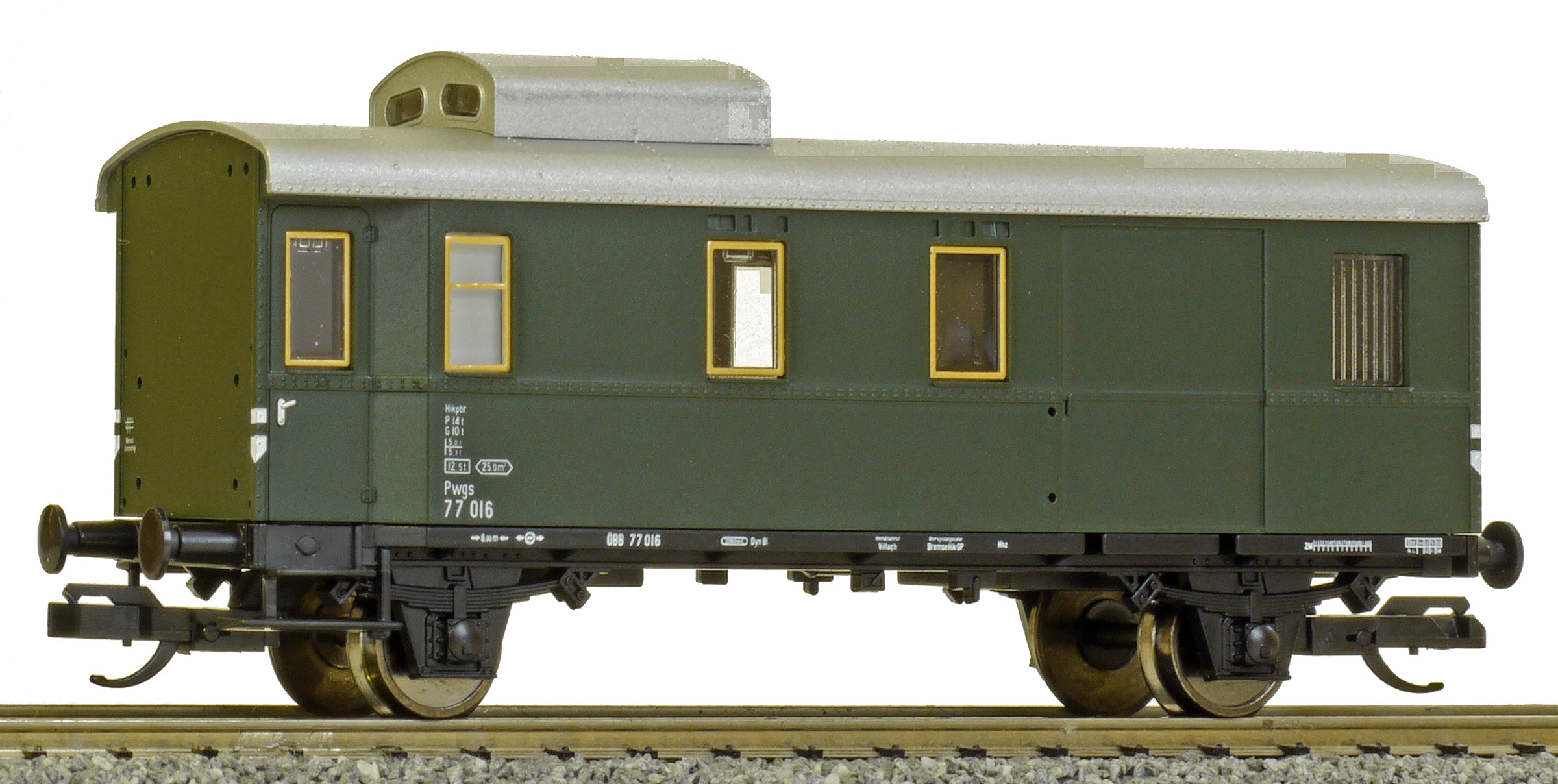 | služební vůz pro nákladní vlaky zelený s šedou střechou |