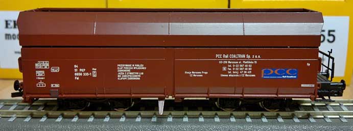 | nákladní samovýsypný vůz červenohnědý „PCC Rail Coaltran” |