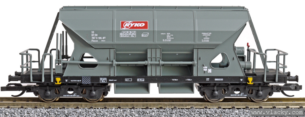| nákladní samovýsypný vůz šedý s černým rámem a s deklem „RYKO“ |