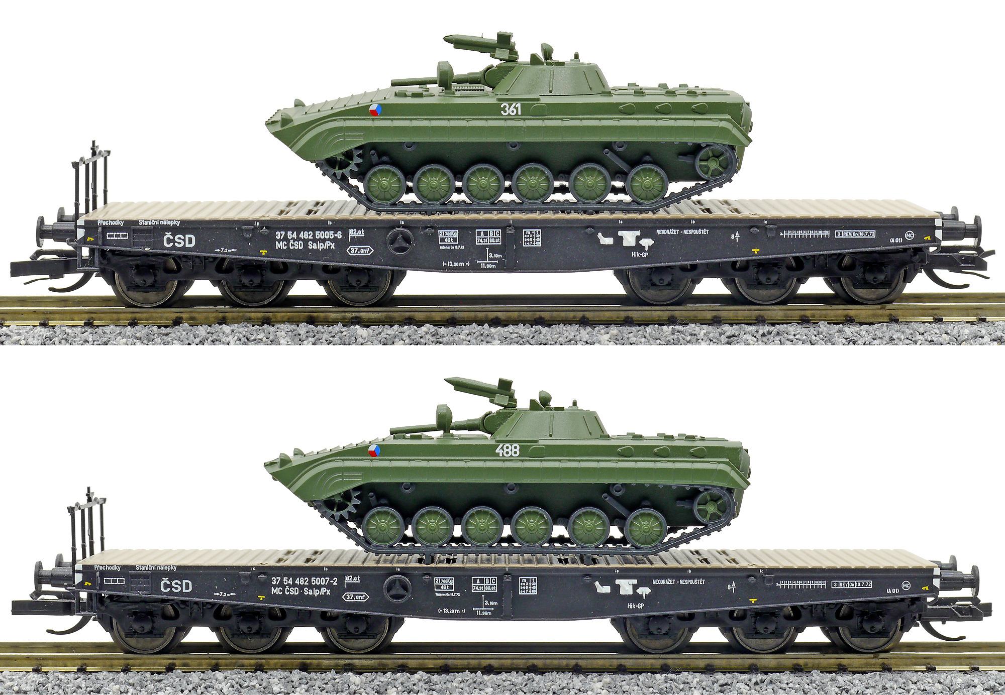 | set dvou plošinových vozů s nákladem tanků BMP-1 |
