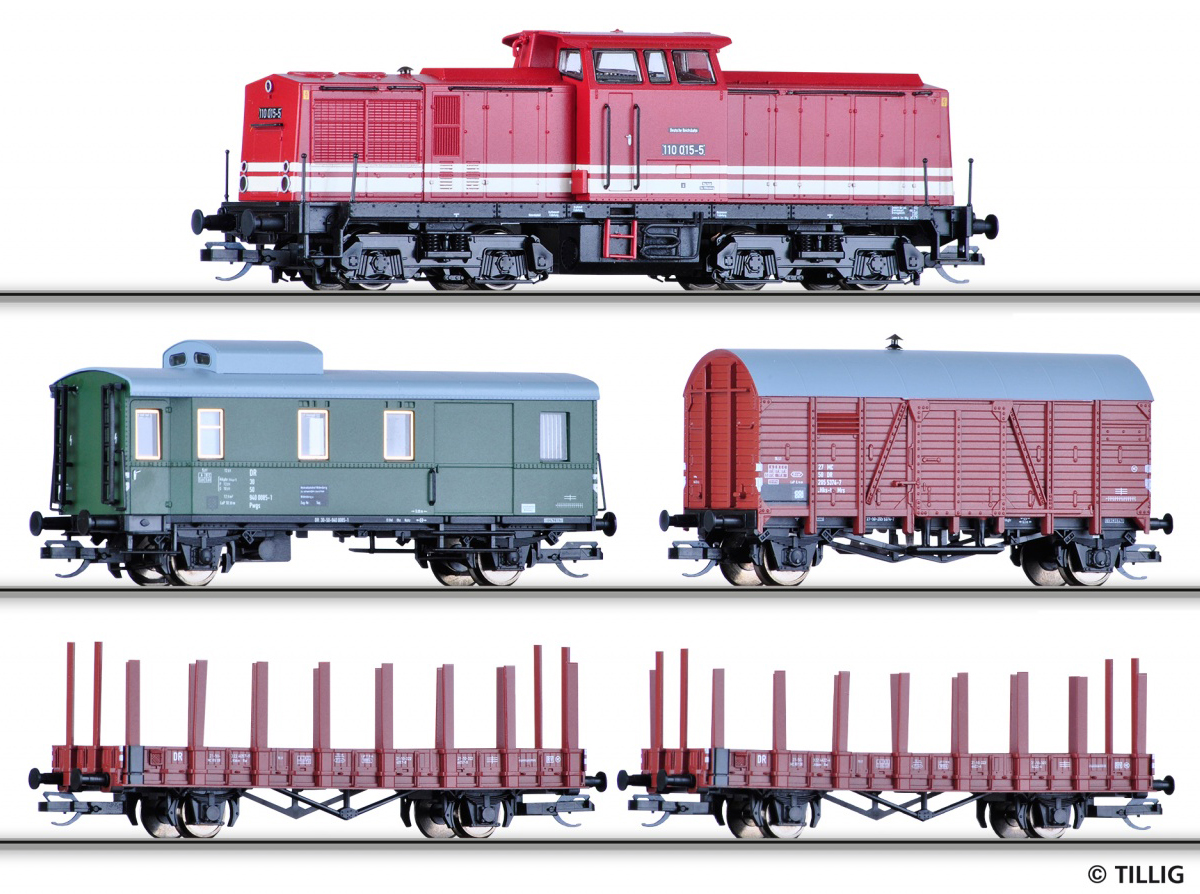 | set lokomotivy BR 110 a čtyř nákladních vozů |