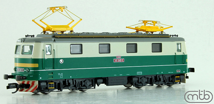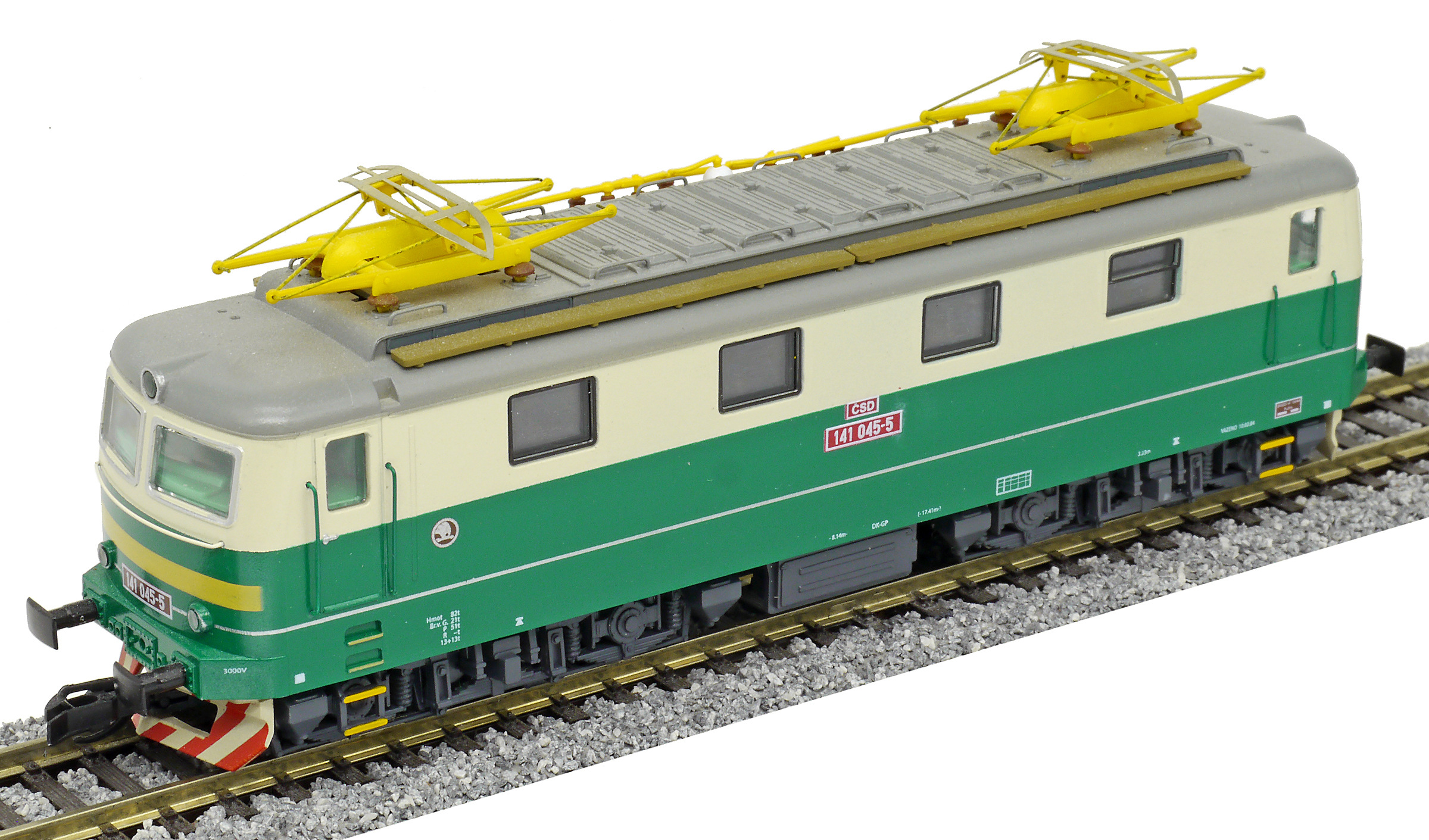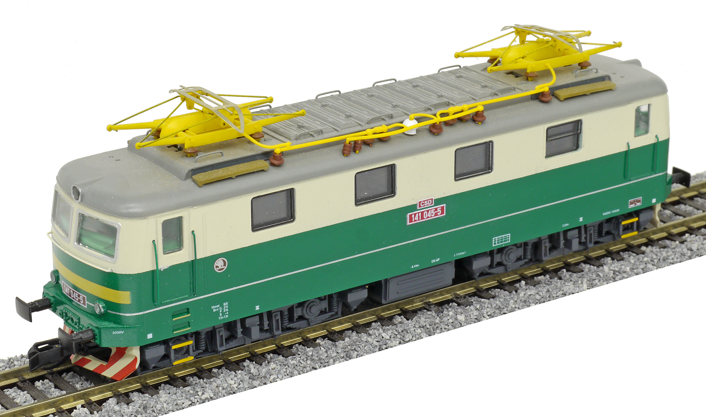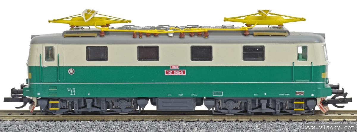 Popis   elektrická lokomotiva zelená-slonová kost, šedá střecha, žlutý výstražný pruh