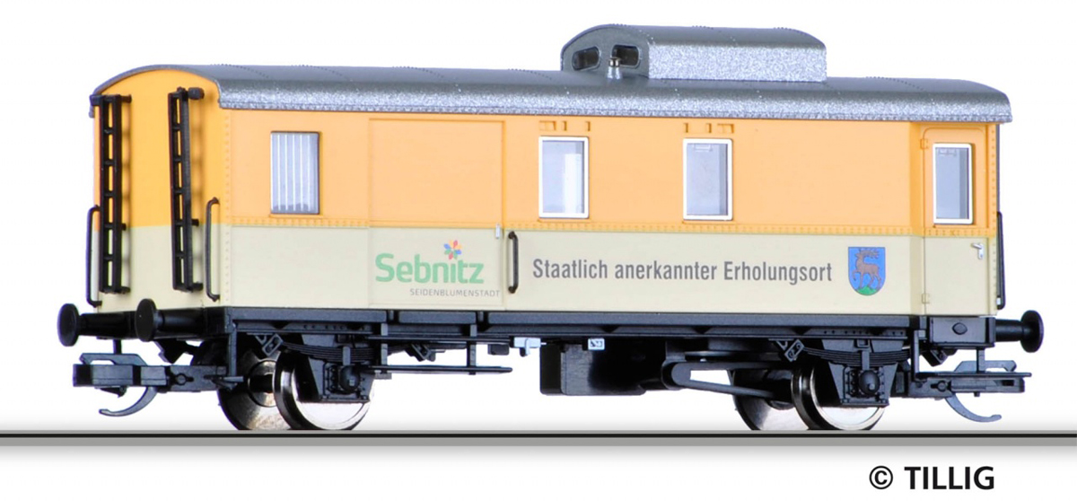 zavazadlový vůz oranžový-slonová kost se stříbrnou střechou „Kunstblumenstadt Sebnitz“
