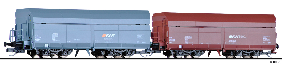 | nákladní samovýsypný vůz šedý s logem „AWT“ |