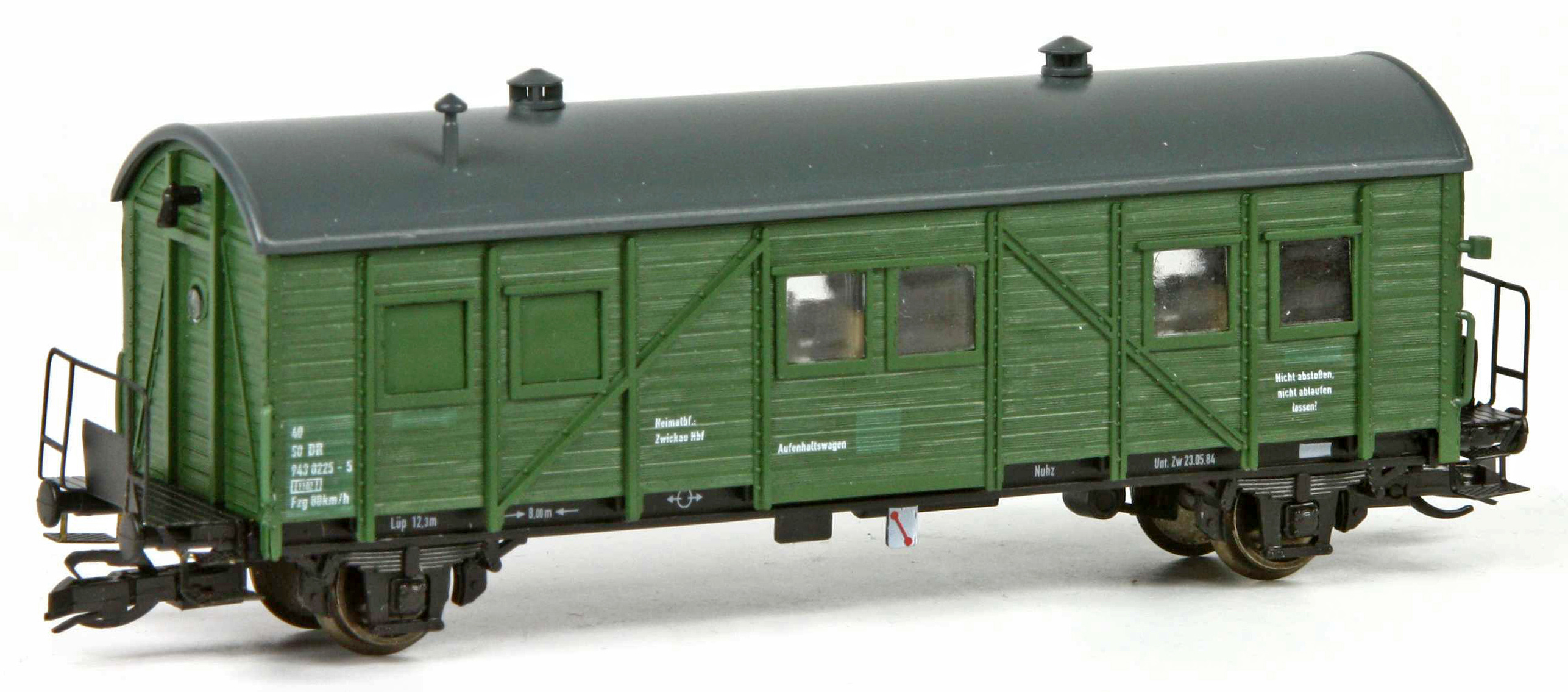 | pomocný osobní vůz, zelený s šedou střechou, nekuřáci, přeprava zavazadel |