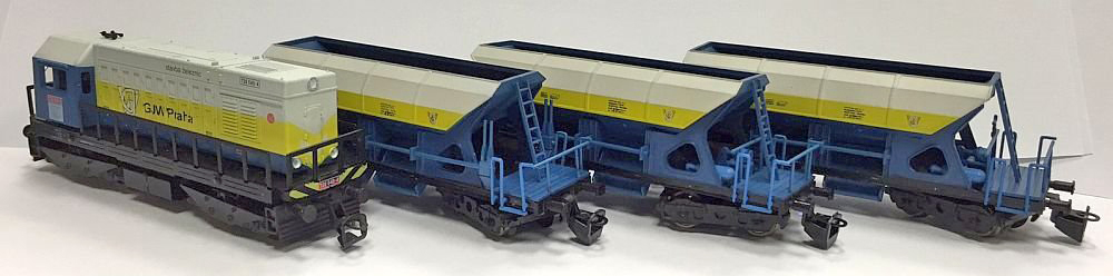 | set dieselové lokomotivy řady 720 a tří samovýsypných vozů |