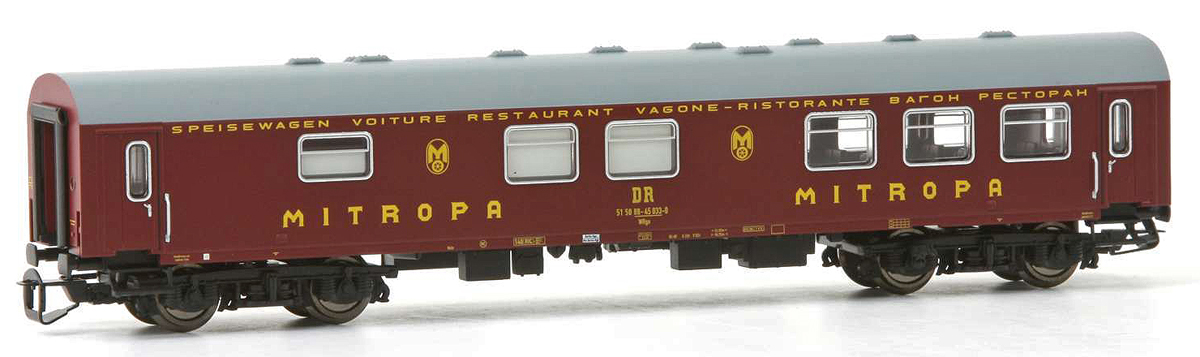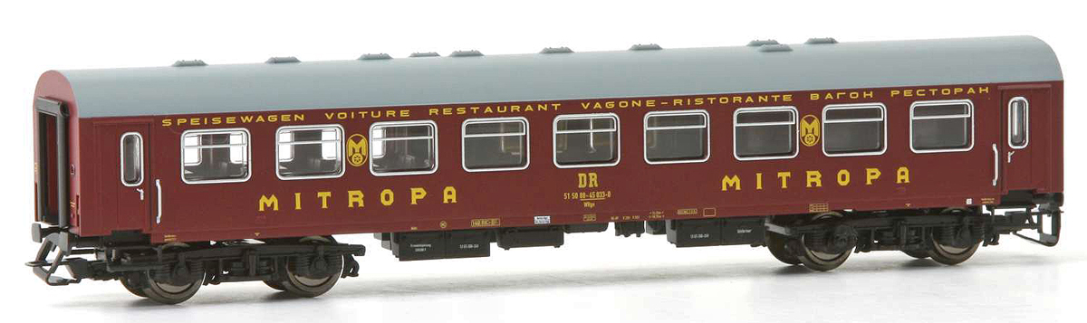 Popis   rekonstruovaný jídelní vůz tmavě červený s šedou střechou „Mitropa“