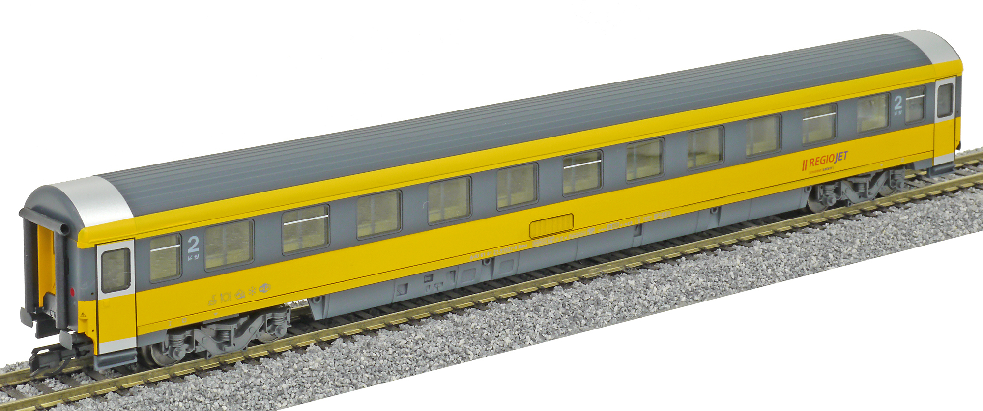 | rychlíkový vůz v barvách „RegioJet“ 2. tř. |
