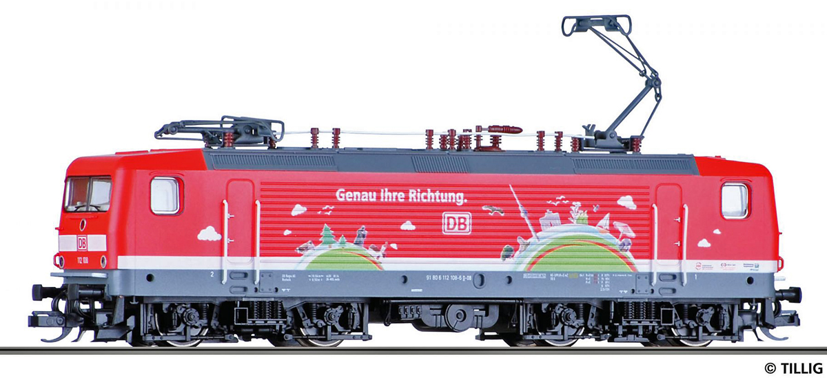 | elektrická lokomotiva červená s potiskem „Genau Ihre Richtung ...“ |