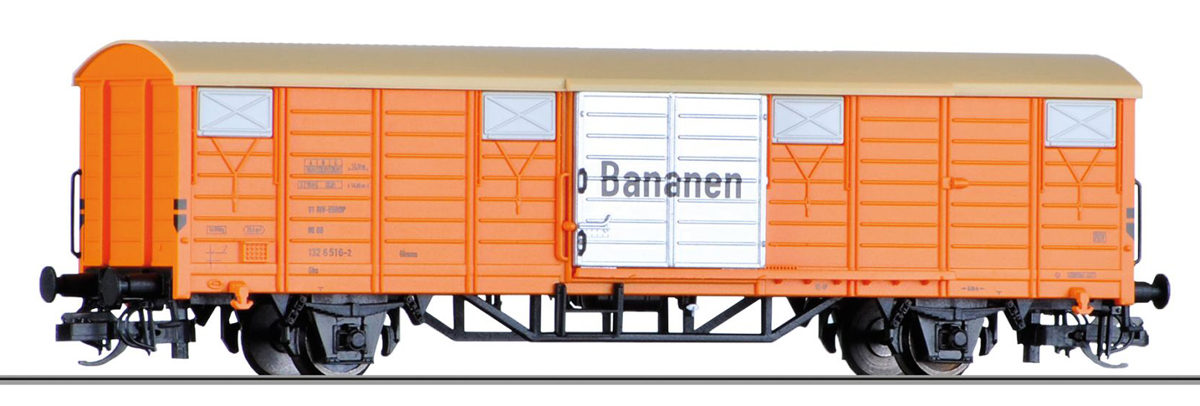 | krytý nákladní vůz oranžový s olivovou střechou „Bananen“ |