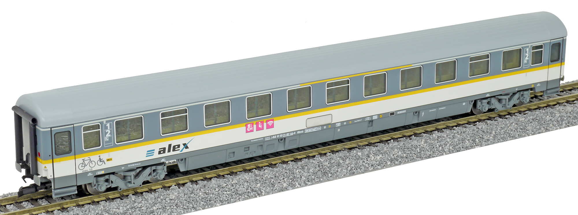 | rychlíkový vůz v barevném schematu „alex“ 1./2. tř. |