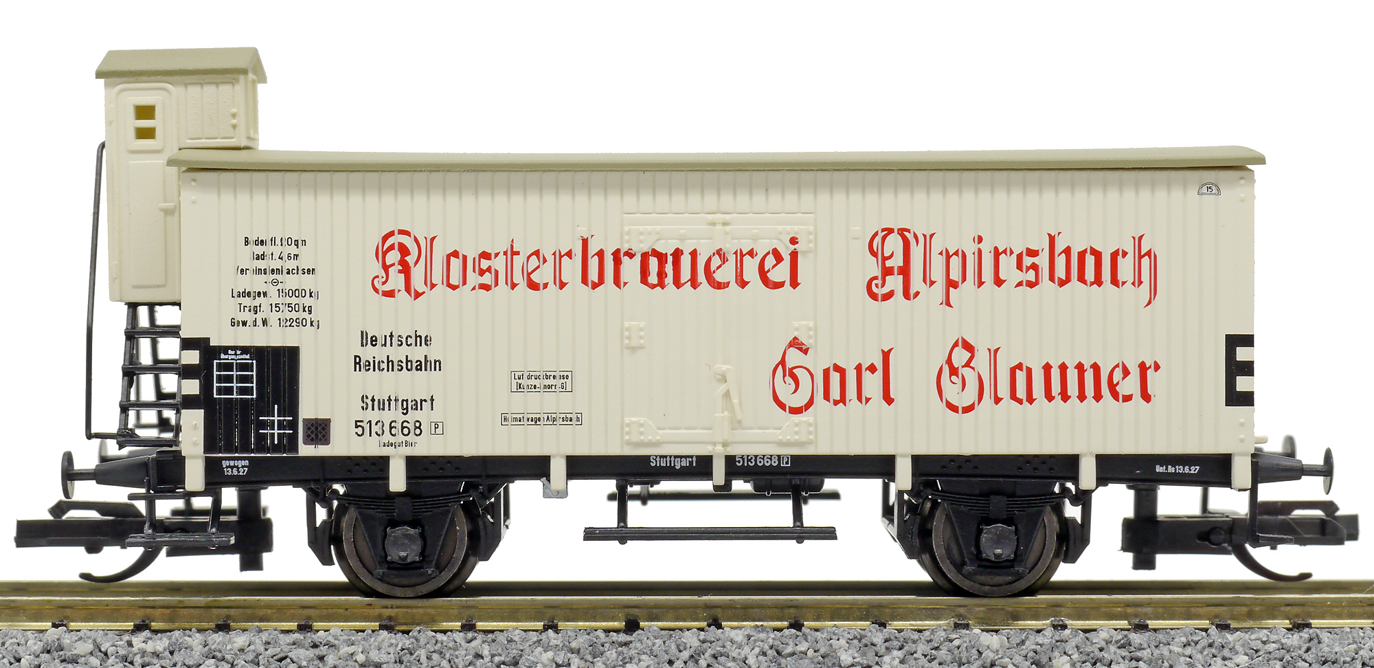 | chladicí vůz bílý s šedou střechou „Klosterbrauerei Alpirsbach“ |