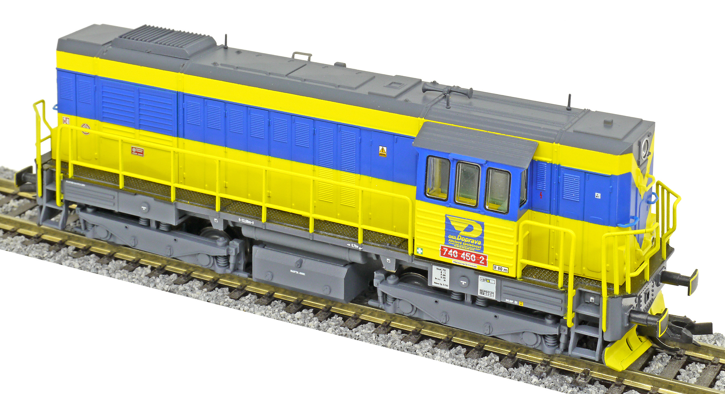 | dieselová lokomotiva v barevném schematu „OKD Doprava a.s.“ |