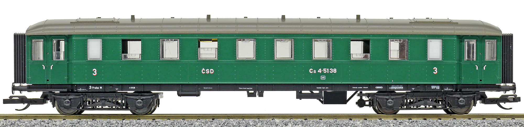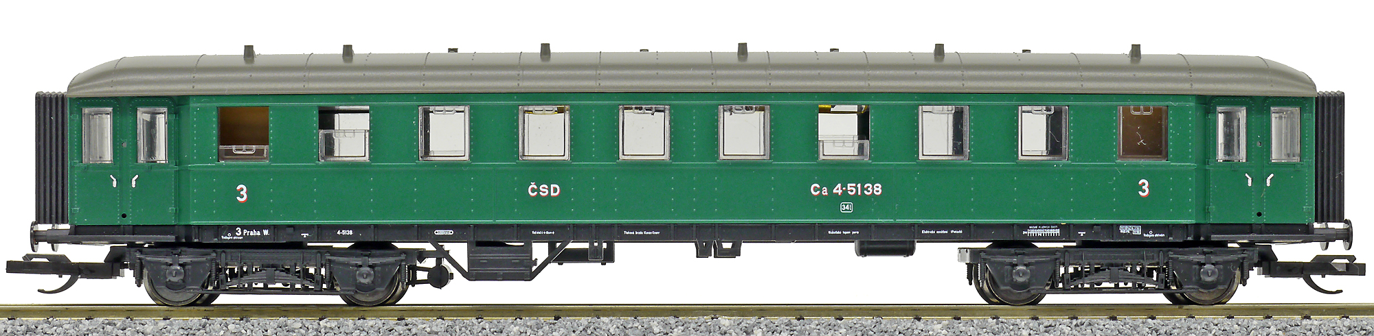 | osobní vůz zelený s šedou střechou 3. tř. |