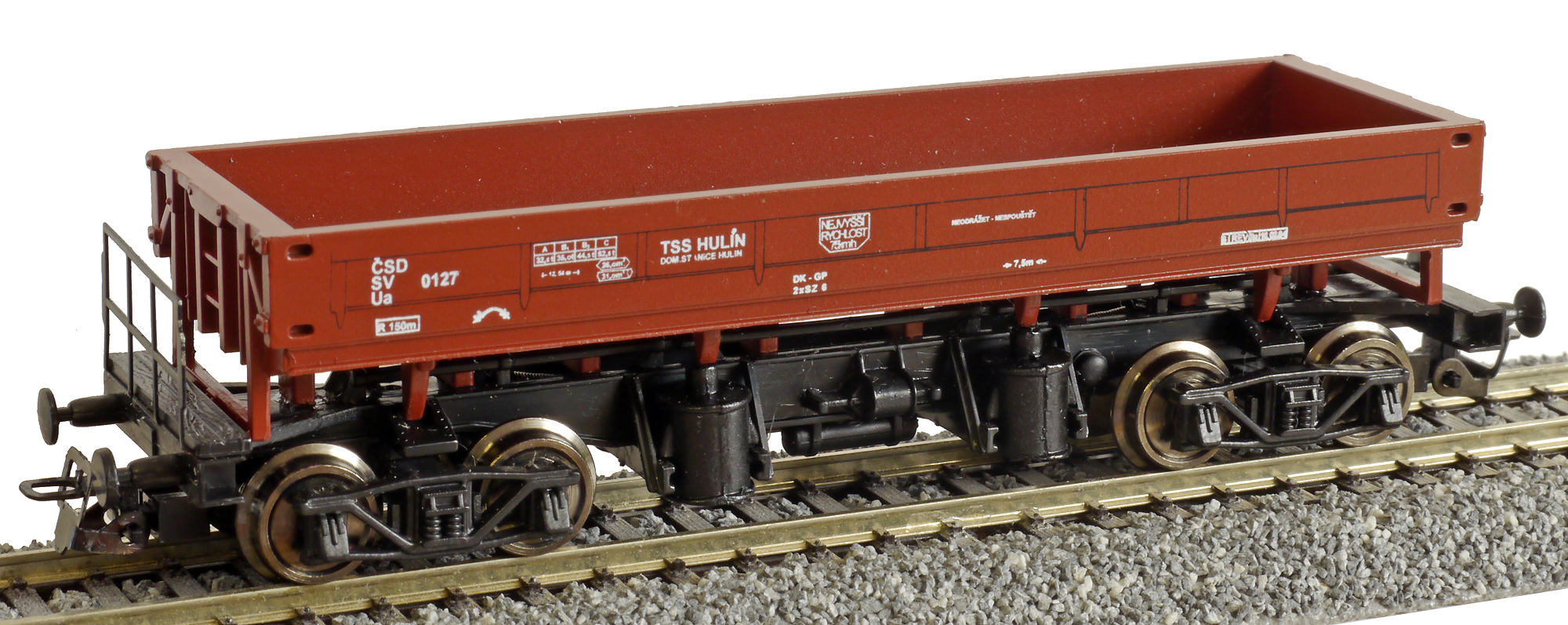Popis   nákladní vůz oboustranně výsypný červený s černým pojezdem