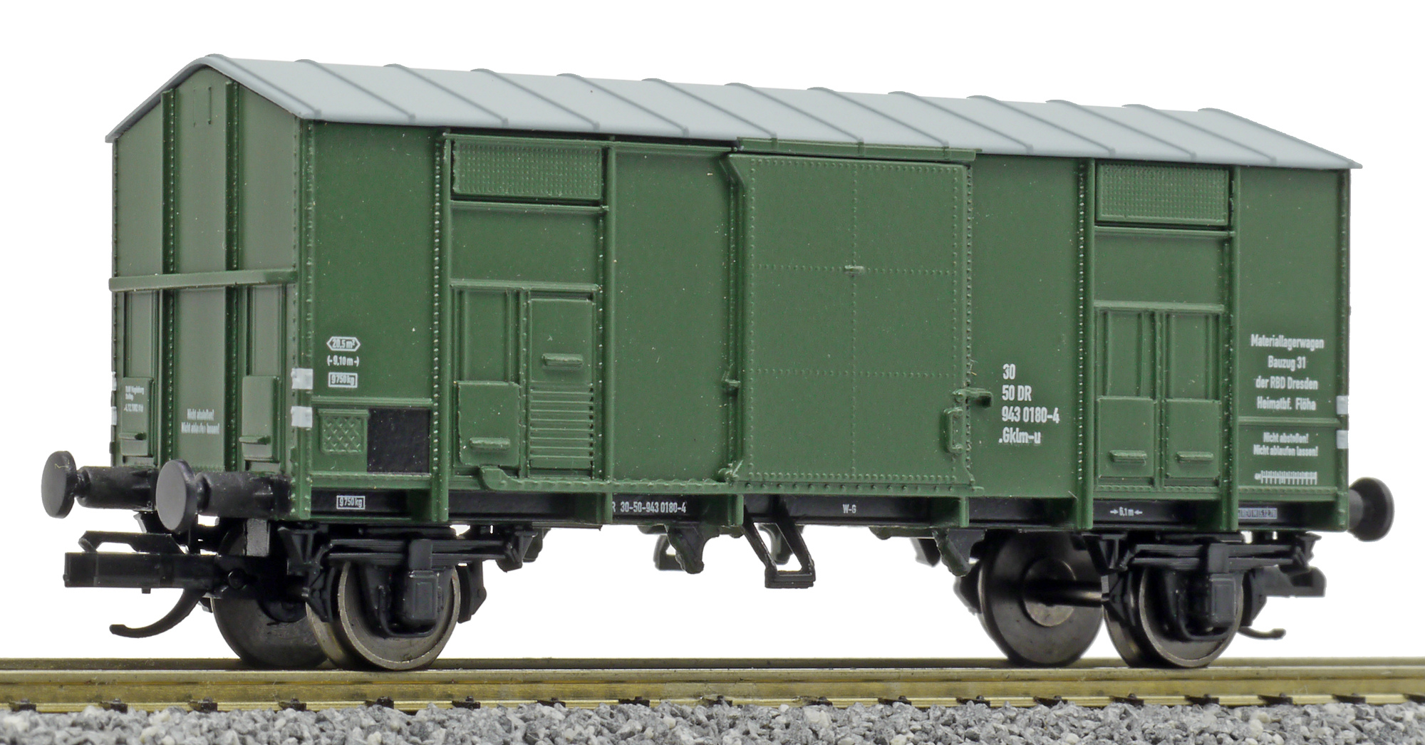 | krytý nákladní vůz zelený s šedou střechou do pracovního vlaku |