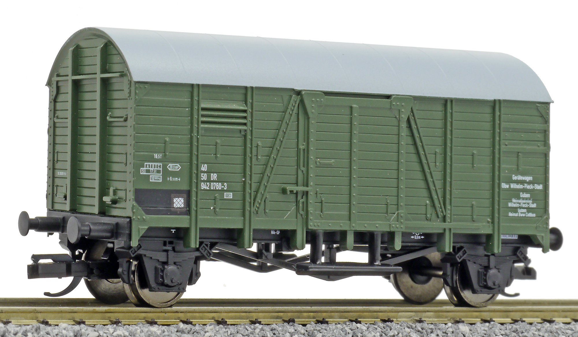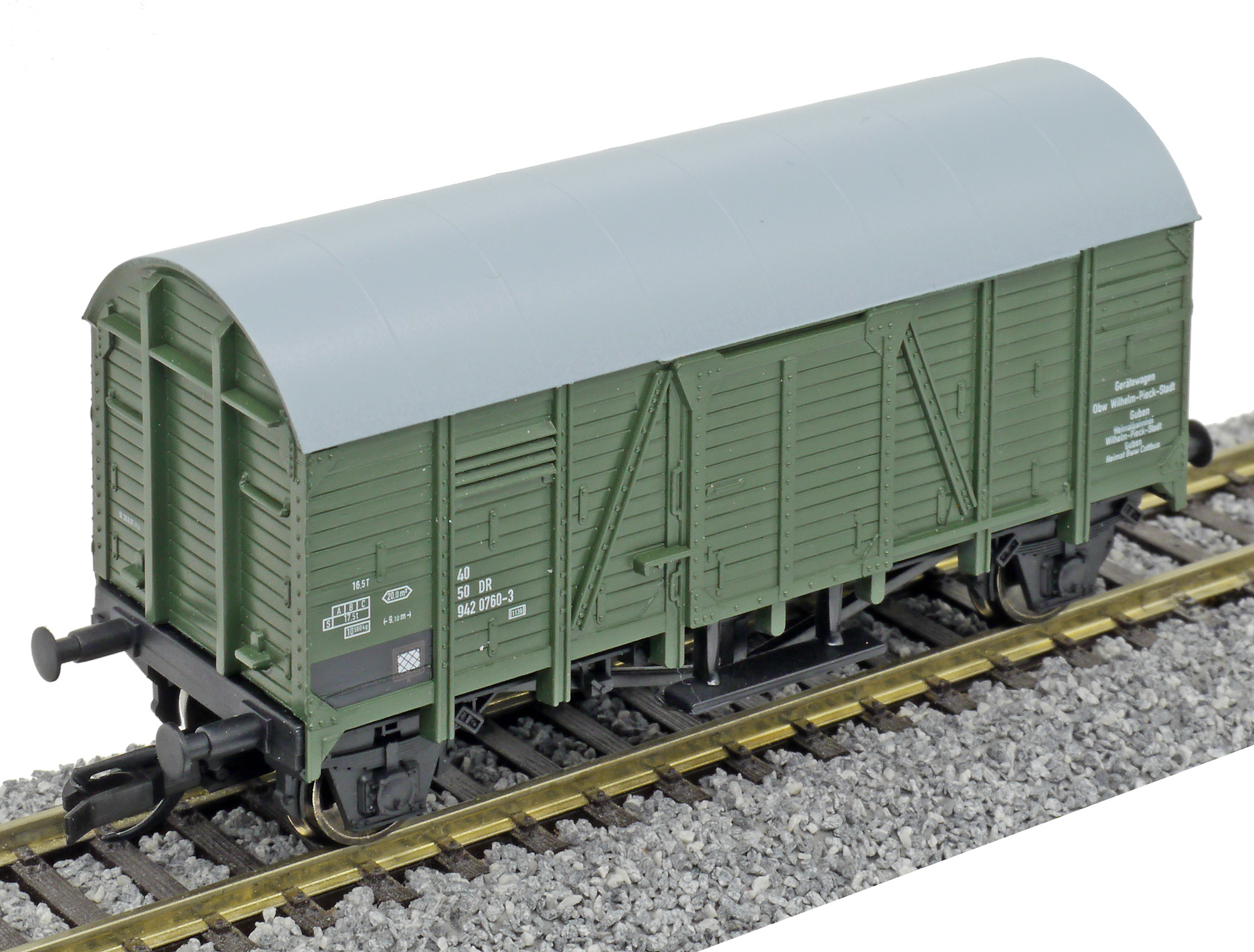 | krytý nákladní vůz zelený s šedou střechou do pracovního vlaku |