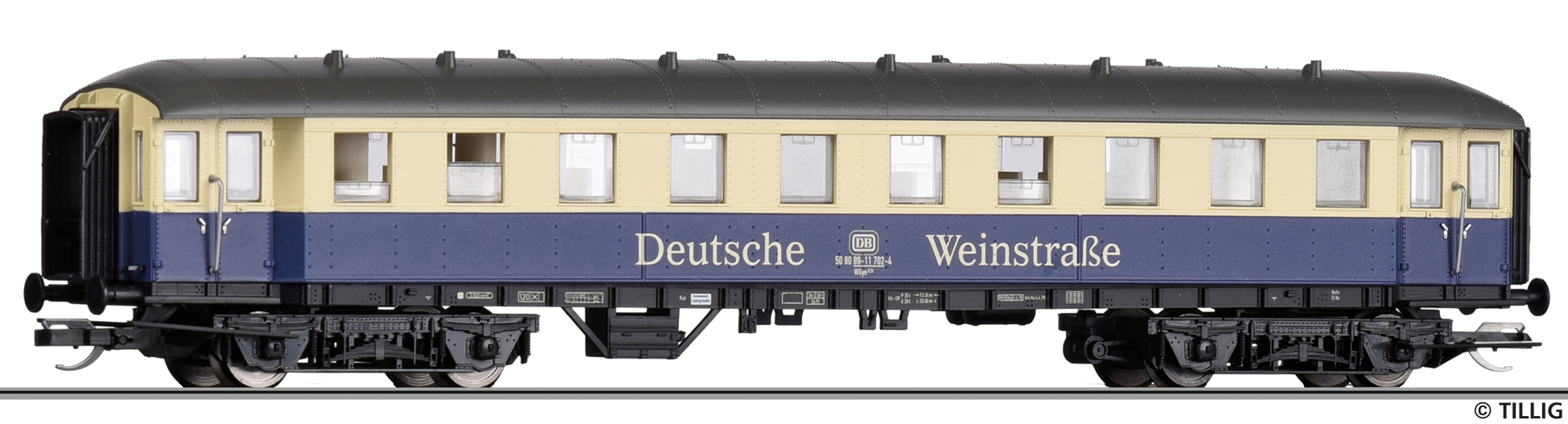 | salónní vůz modrý-slonová kost s šedou střechou „Deutsche Weinstraße“ |