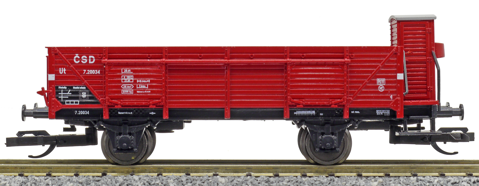 Popis   otevřený nákladní vůz červenohnědý s brzdařskou budkou