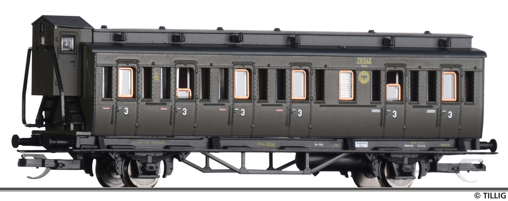 Popis   oddílový osobní vůz tmavě zelený s černou střechou 3. tř.