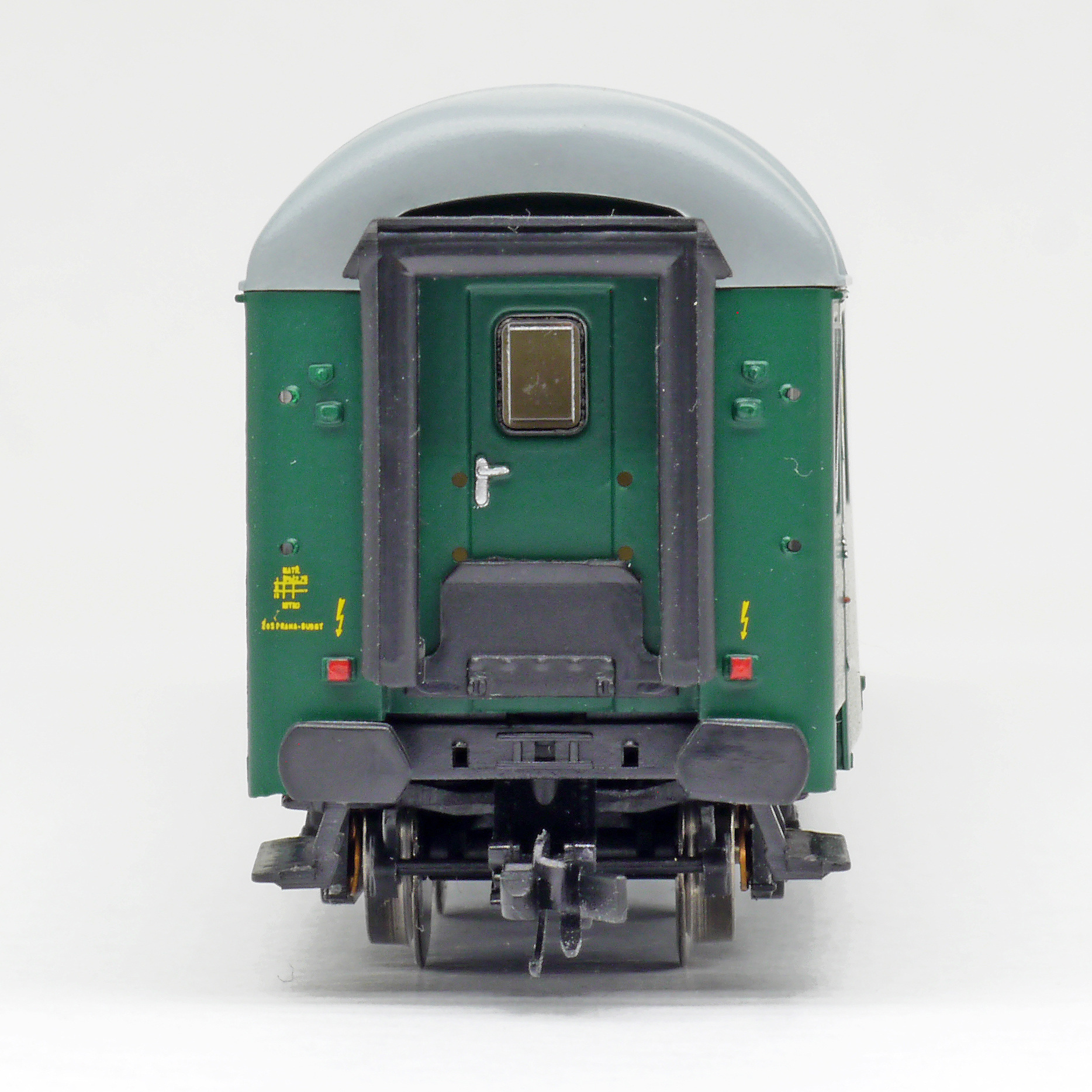 | lehátkový vůz zelený s šedou střechou 2. tř., Praha |