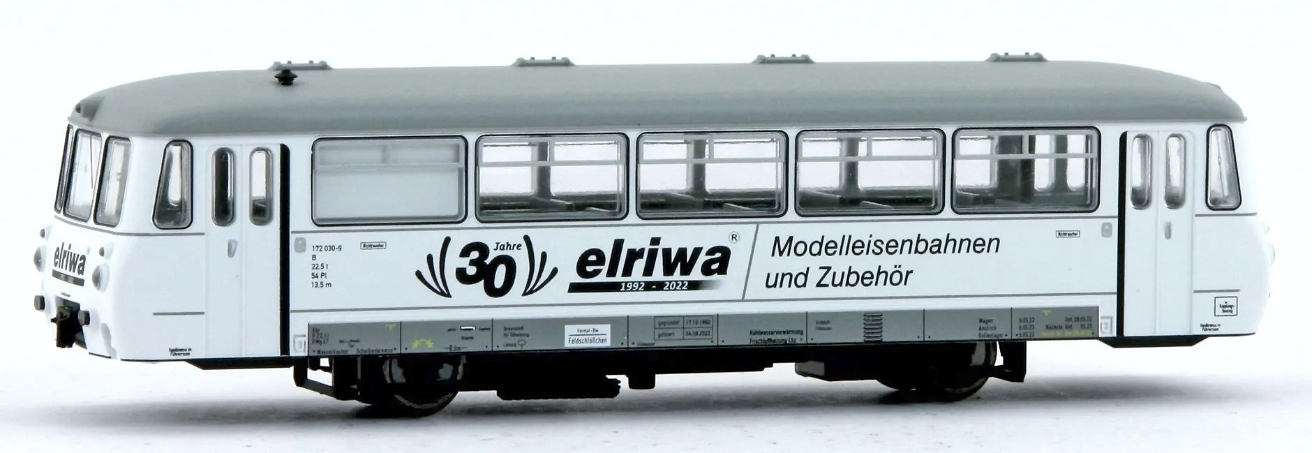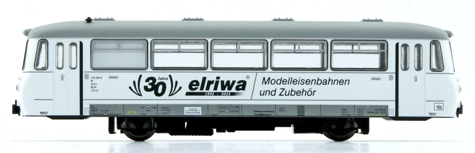 | motorový vůz bílý s reklamním potiskem „30 Jahre elriwa“ |