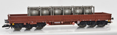 | nízkostěnný nákladní vůz červenohnědý s nákladem tanků na chemikálie „Chemische Werke Buna“ |