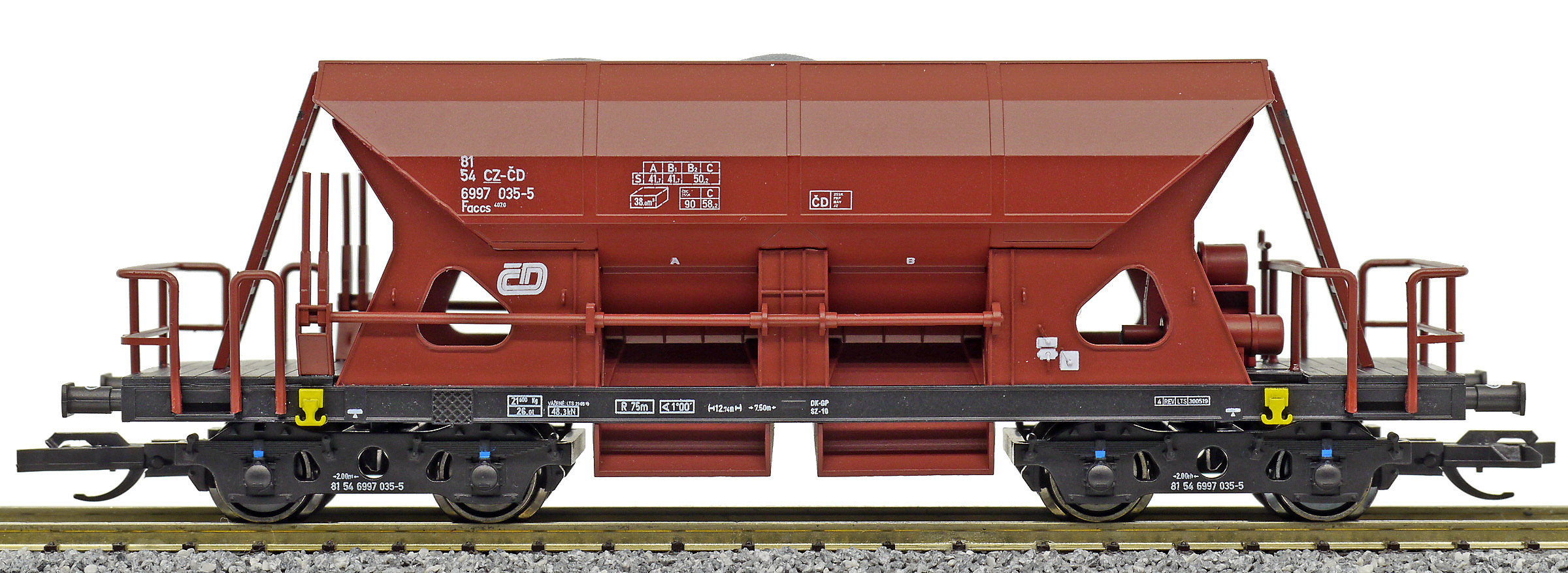 | • 81 54 6997 035-5 | → | nákladní, s podvozky, ve vlastnictví železniční správy, pro mezinárodní dopravu dle zvláštních umluv |