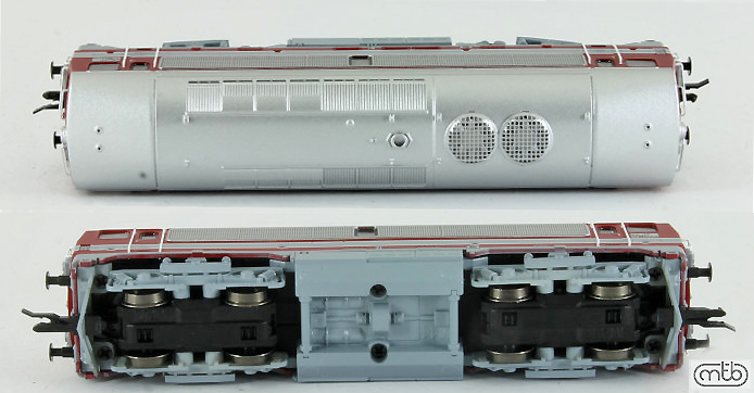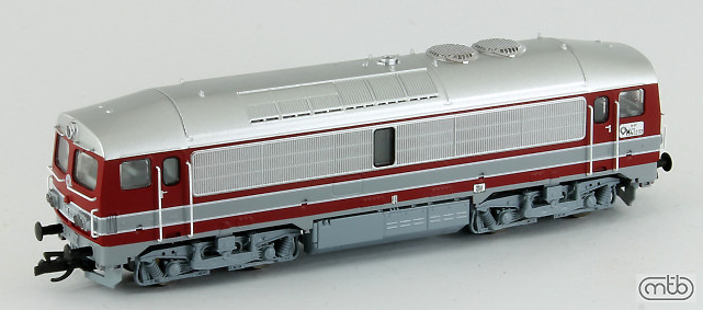 Popis   dieselová lokomotiva vínově červená, stříbrná střecha a větráky