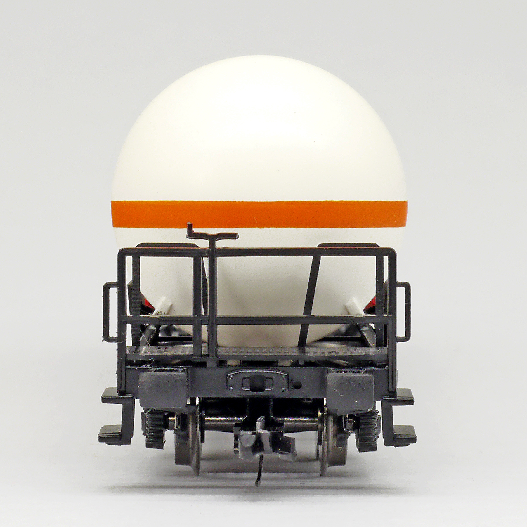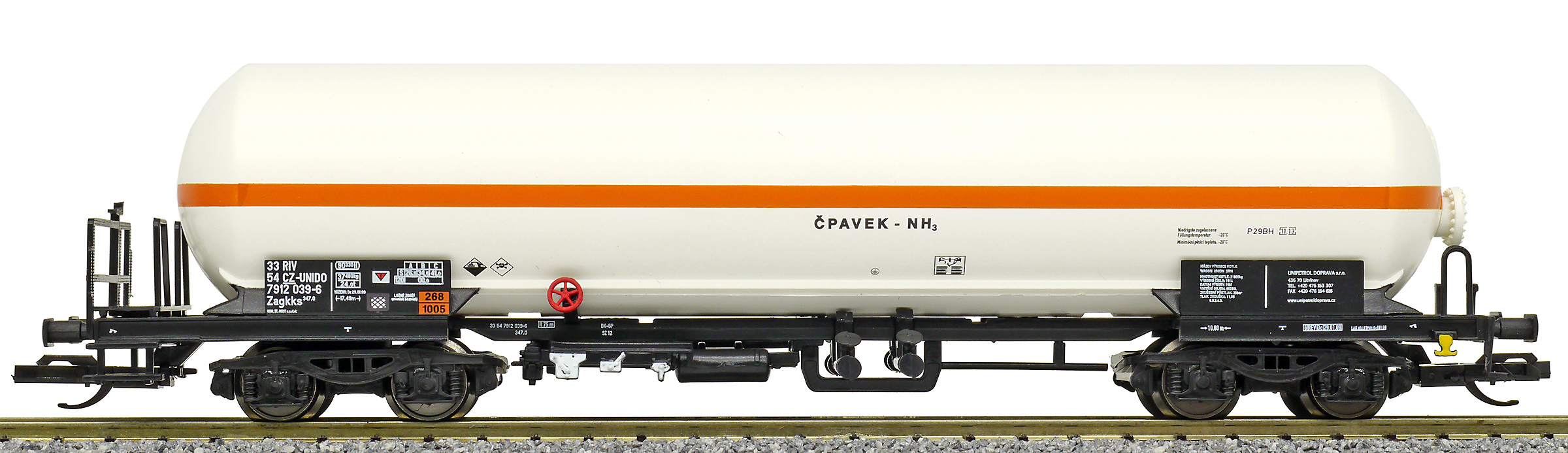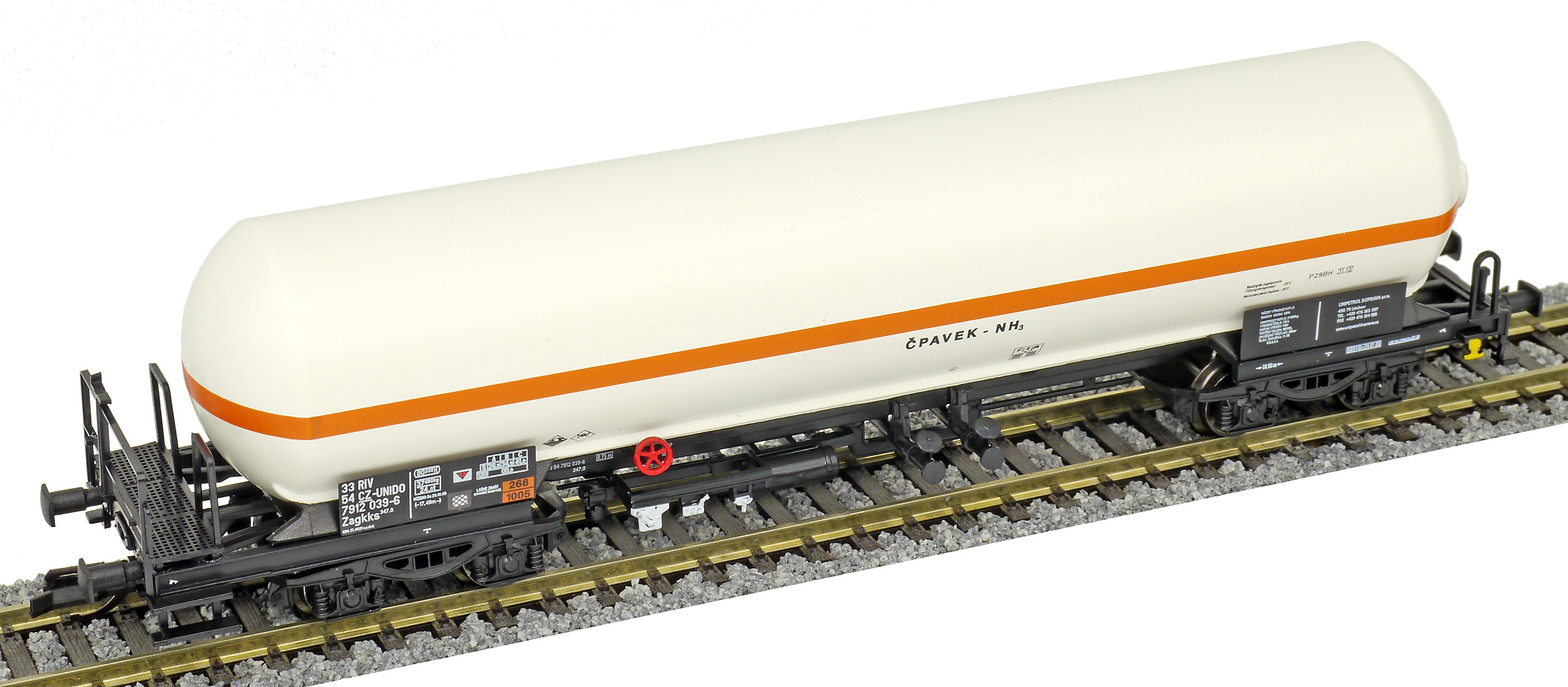 | kotlový vůz světle krémový s oranžovým proužkem na přepravu čpavku |
