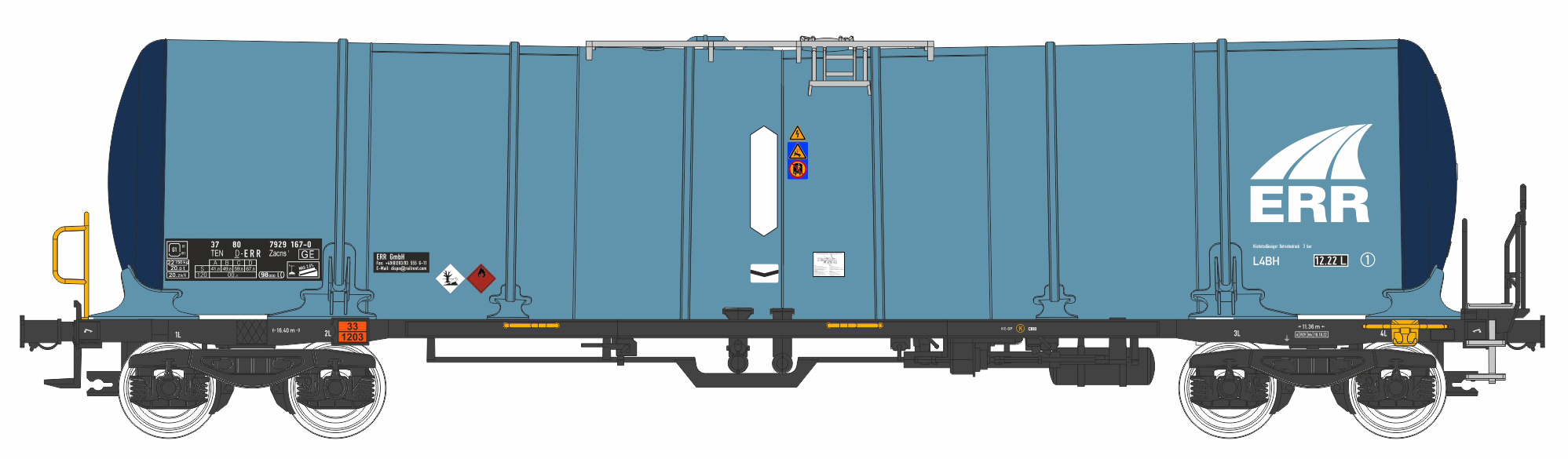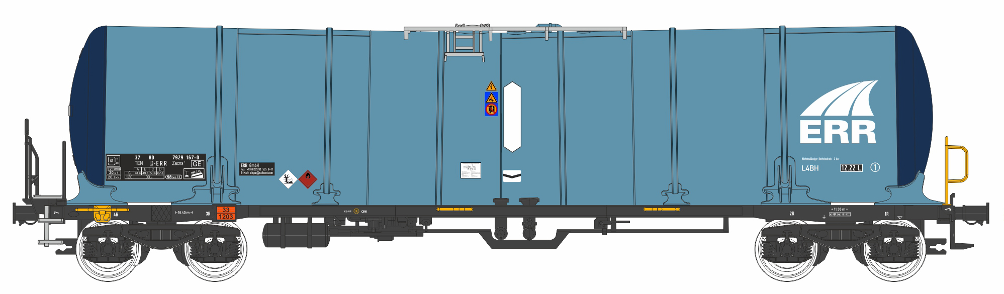 | kotlový vůz světle modrý-tmavě modrý s logem „ERR“ |