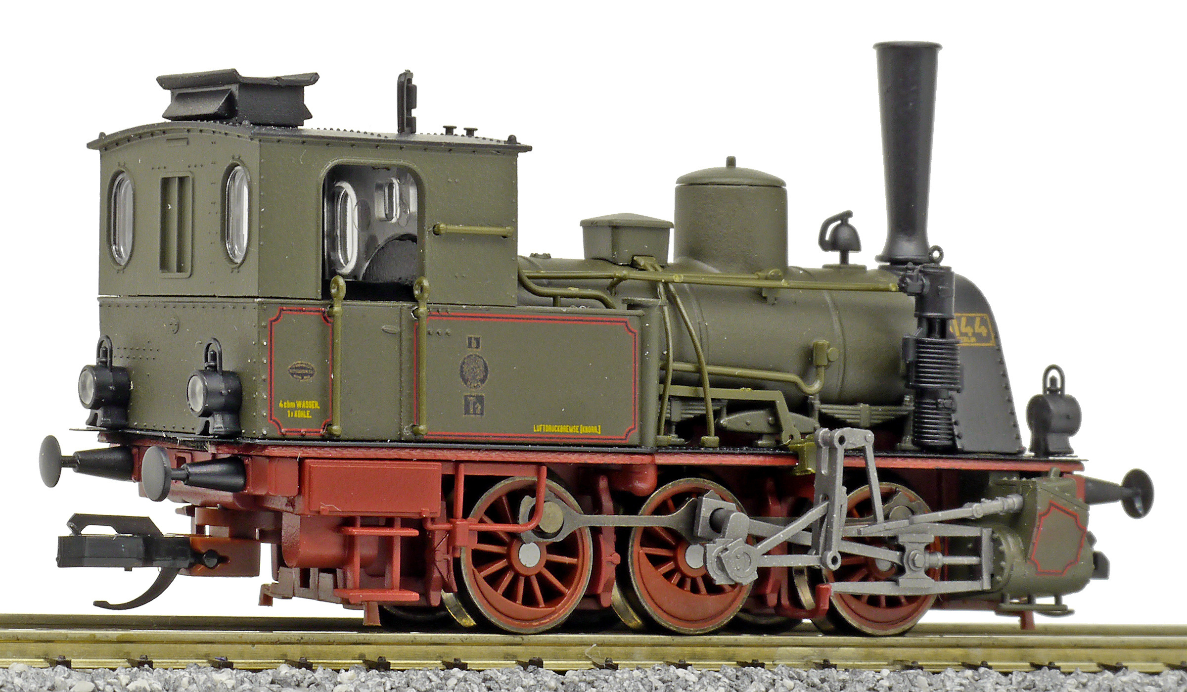 Popis   parní lokomotiva tmavě zelená s tmavě červeným pojezdem