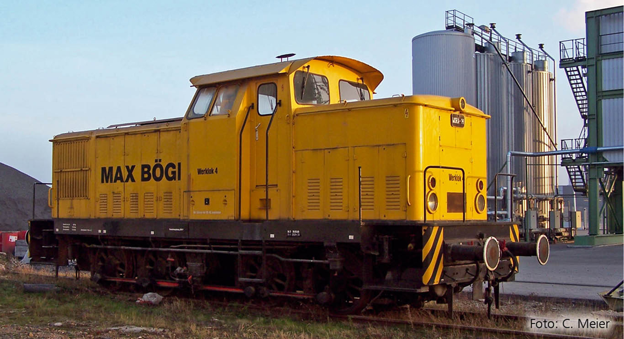 | dieselová lokomotiva oranžová „Max Bögl Bauservice“ |