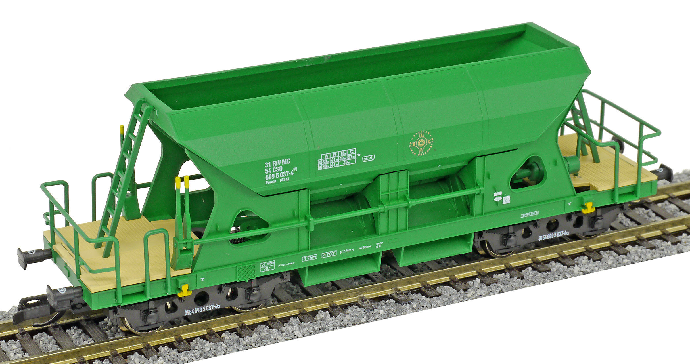 | • 31 54 699 5 037-4 | → | nákladní, s podvozky, pevný rozchod, ve vlastnictví železniční správy, RIV, PPV |