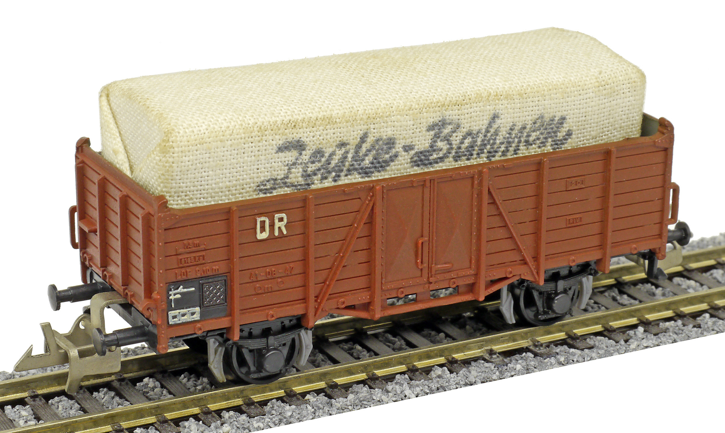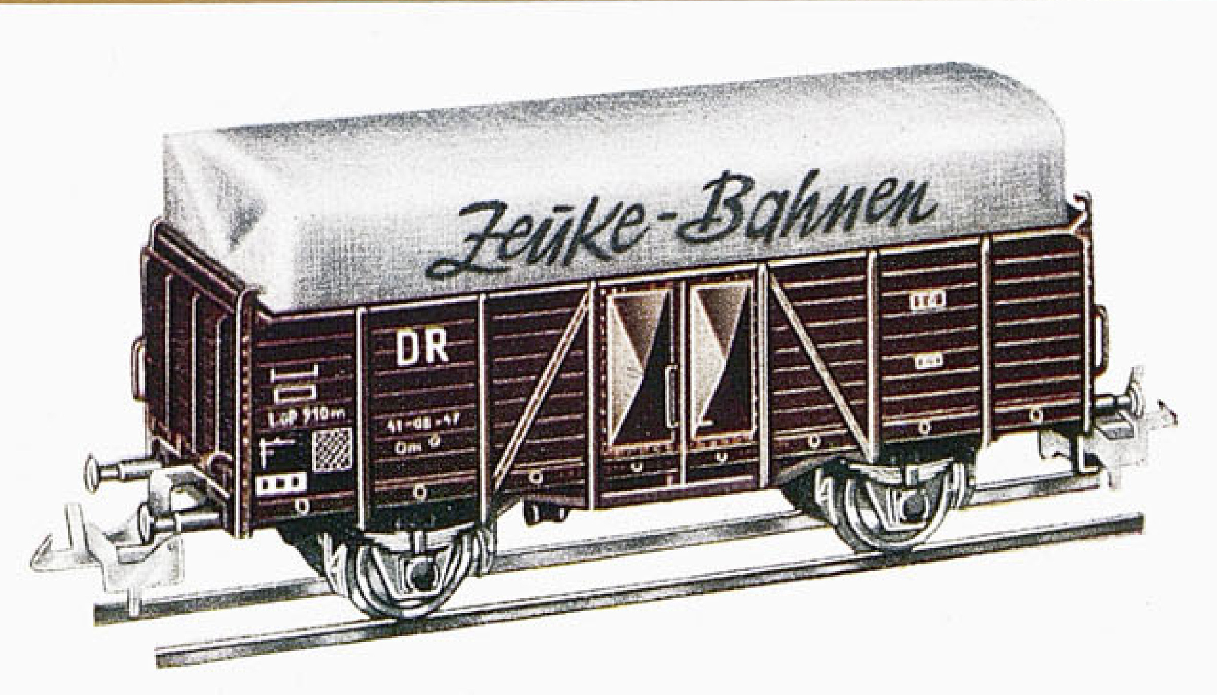 otevřený nákladní vůz červenohnědý s nákladem krytým plachtou „Zeuke-Bahnen“
